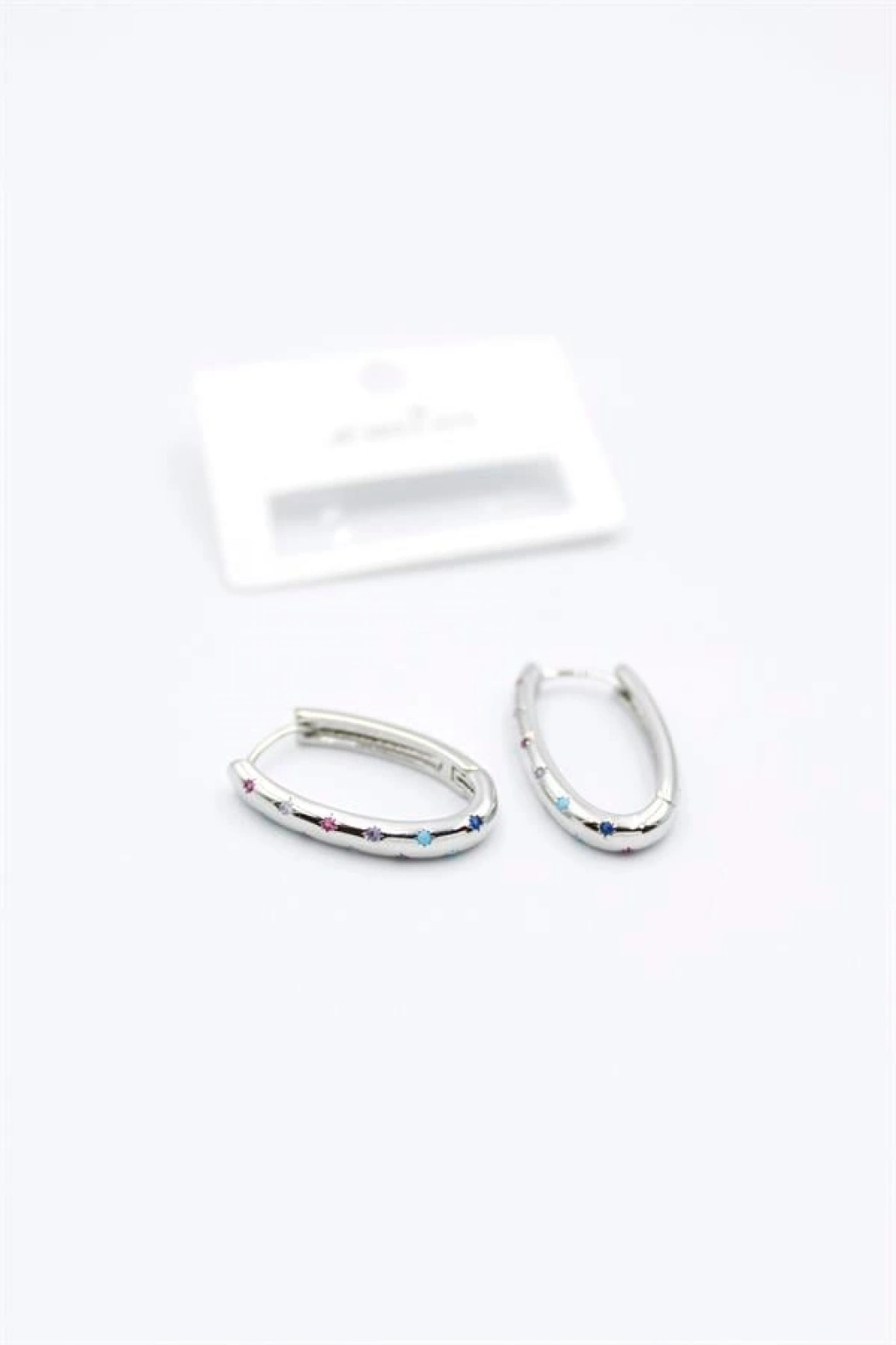 Oval Taşlı Küpe - Gümüş