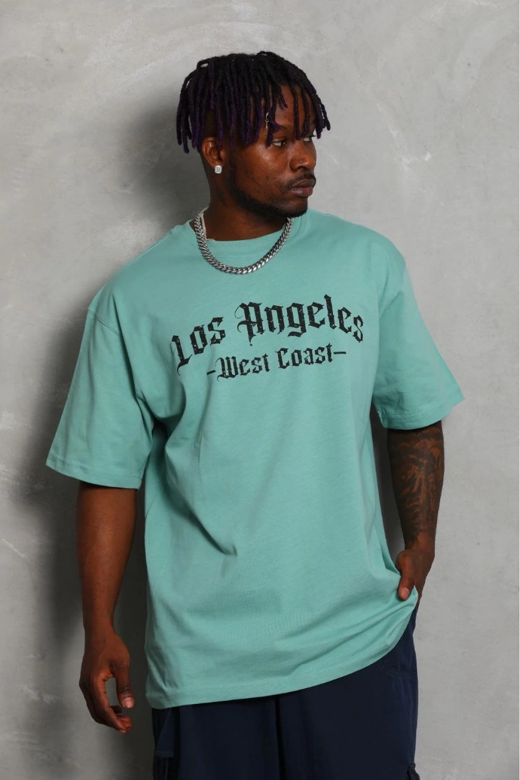 Oversize Baskılı Bisiklet Yaka T-Shirt - Mint Yeşili