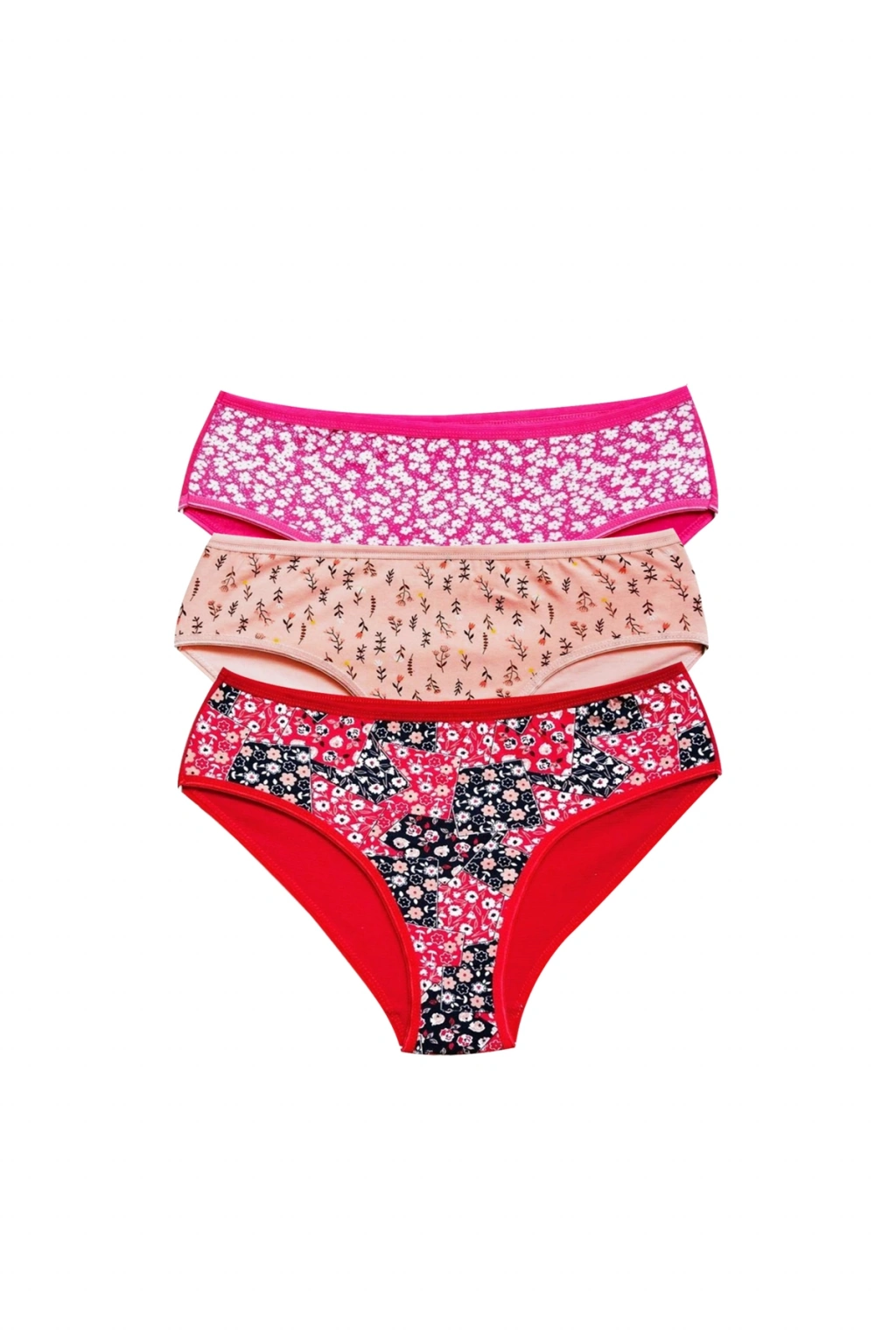 Pamuklu Geniş Kenarlı Likralı Desenli Bato Kadın Külot 3'lü Paket Set3