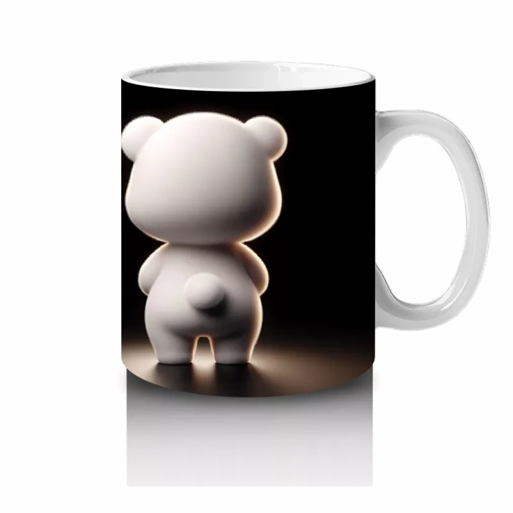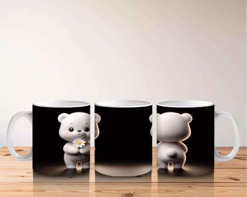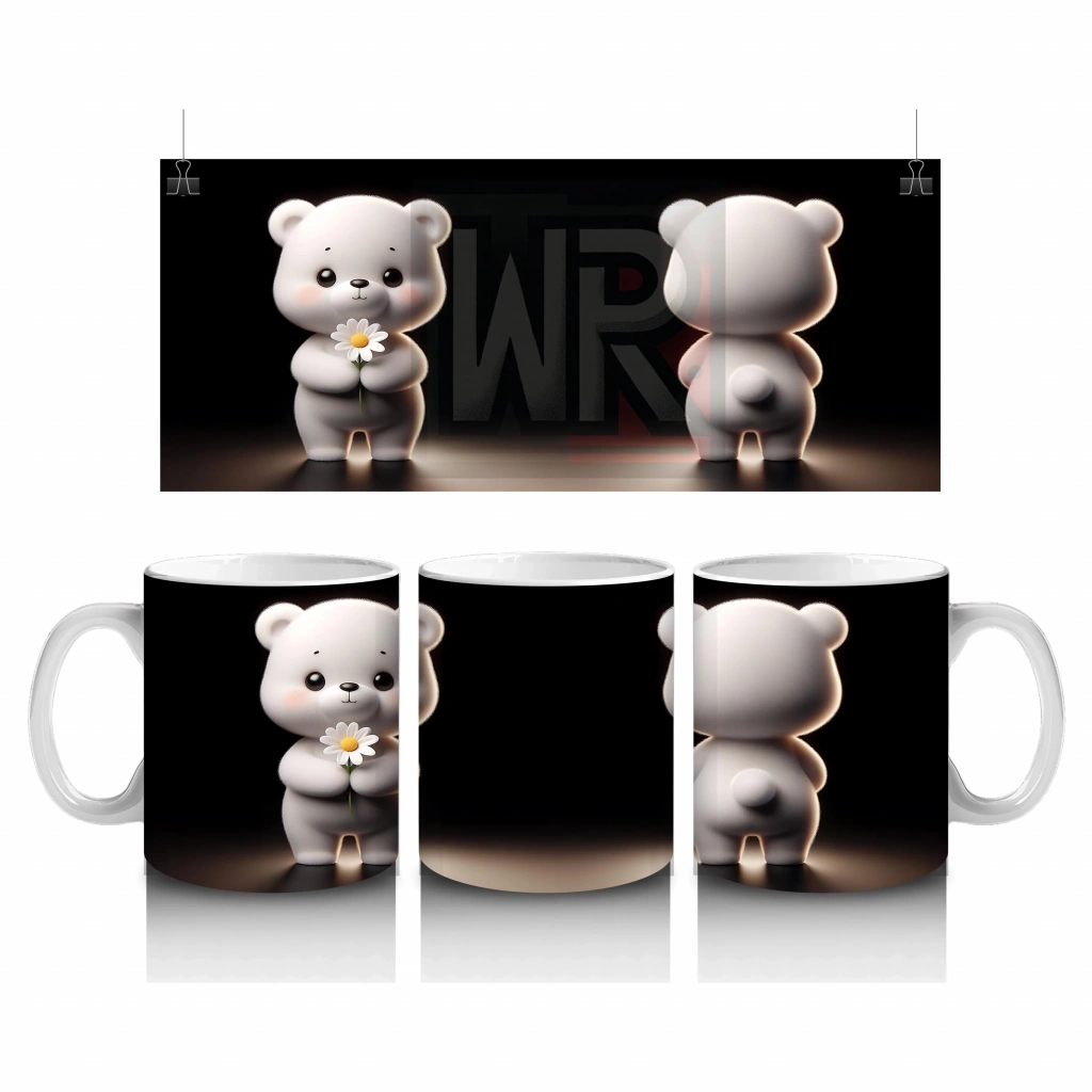 Papatya Tutan Sevimli Beyaz Ayıcık – Baskılı Kahve Kupası