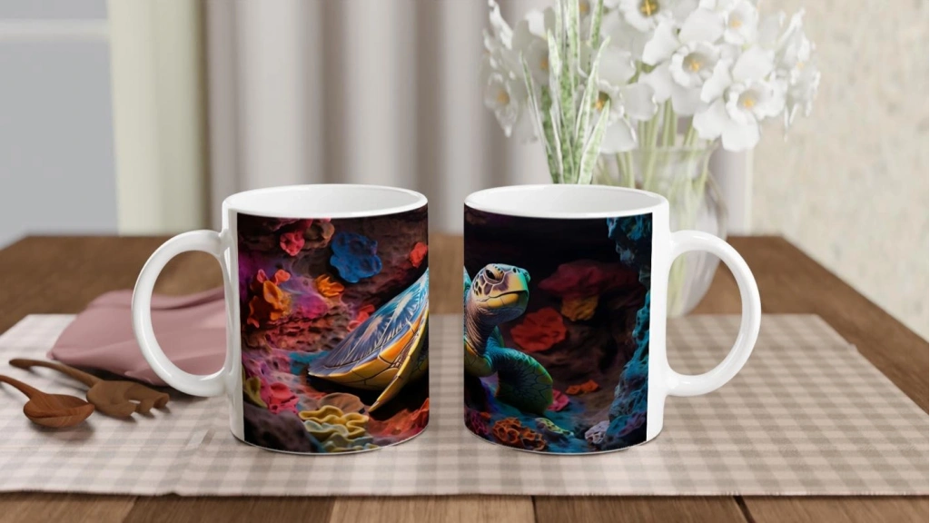 Su altı temalı kupa bardaklarımızda kullanılan süblimasyon baskı, canlı renk geçişleri ve yüksek detay seviyesiyle okyanus hissini görsel olarak yansıtır. Tüm baskılı ürünlerde olduğu gibi uzun ömürlü kullanım için elde yıkama önerilir.