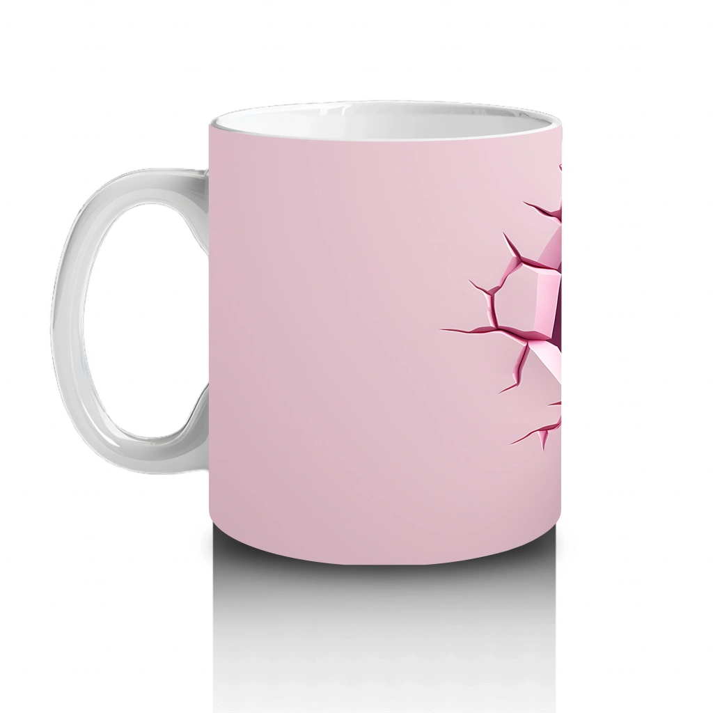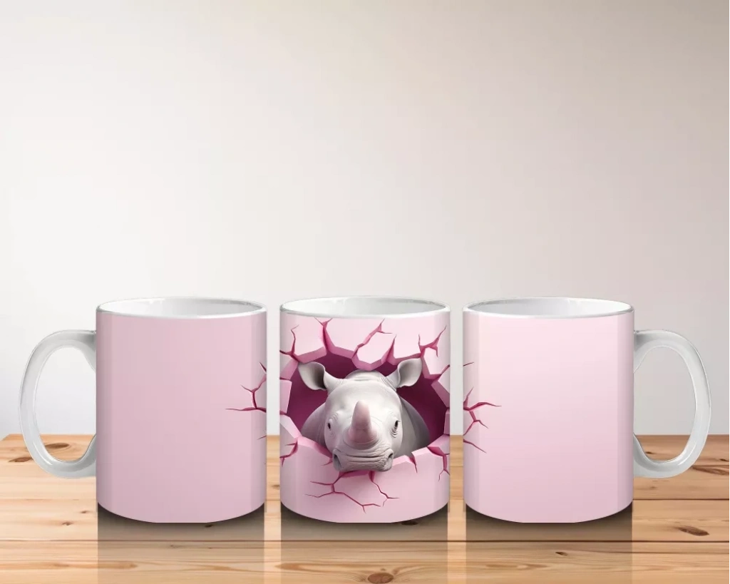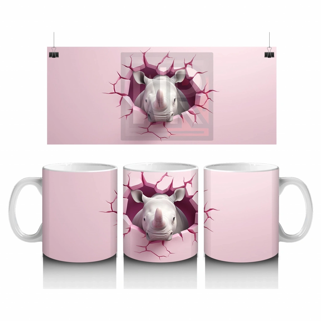 Pembe Arka Planda Kırık Duvarlı Gergedan – Baskılı Kahve Kupası