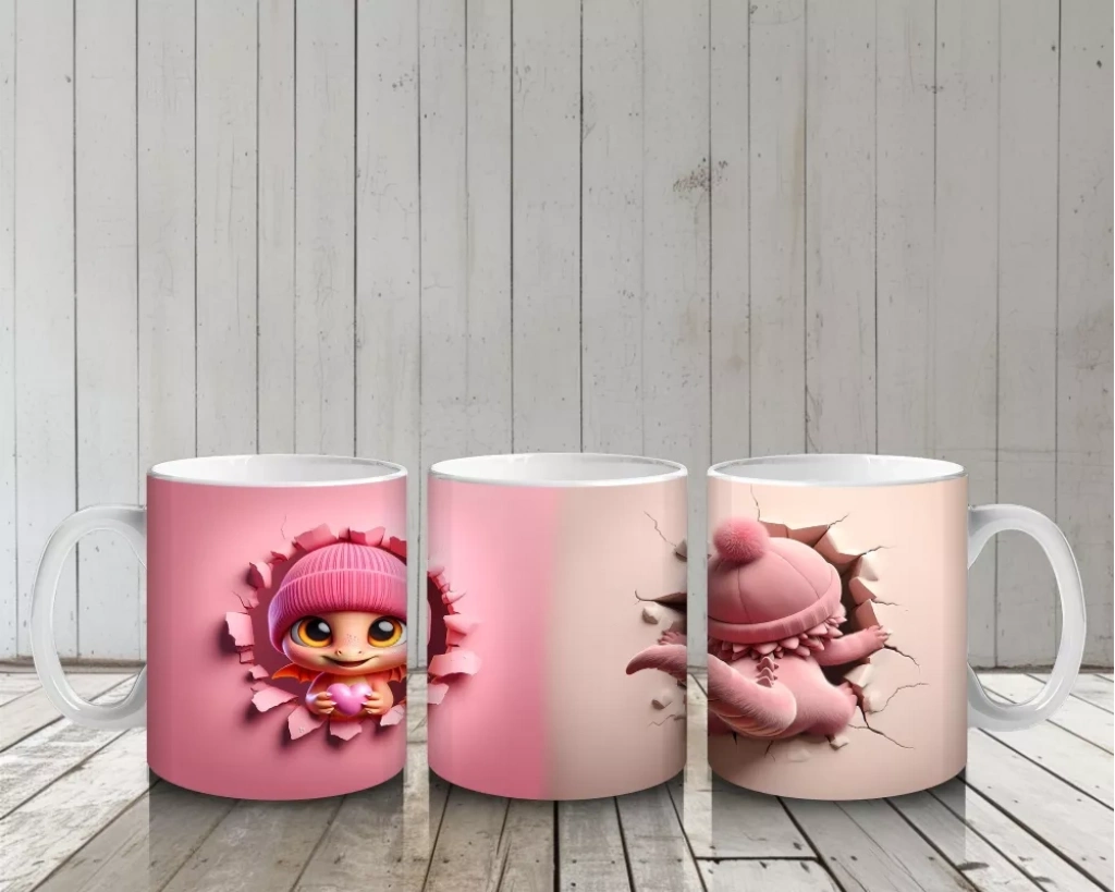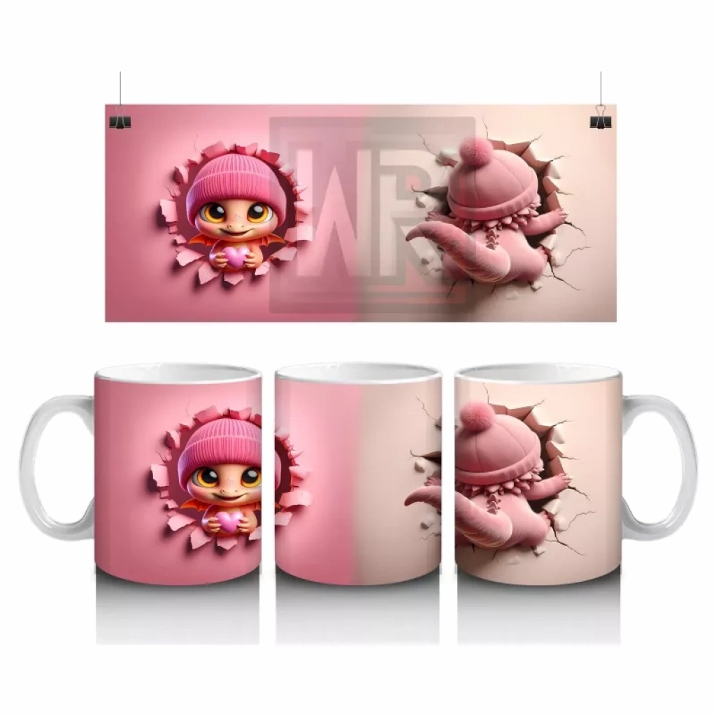Pembe Bereli Sevimli Ejderha Karakteri – Baskılı Kahve Kupası