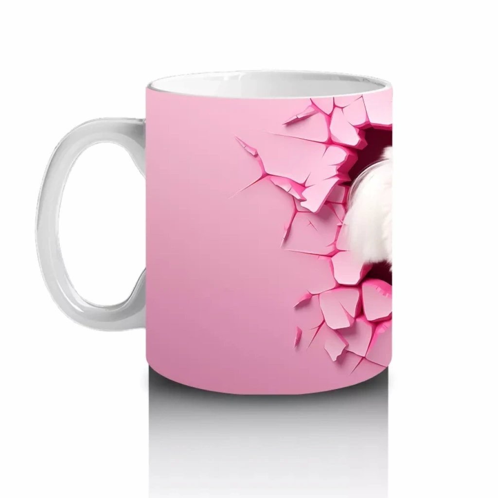 Pembe Çatlak Duvar Arasında Gülümseyen Beyaz Terrier – Baskılı Kahve Kupası