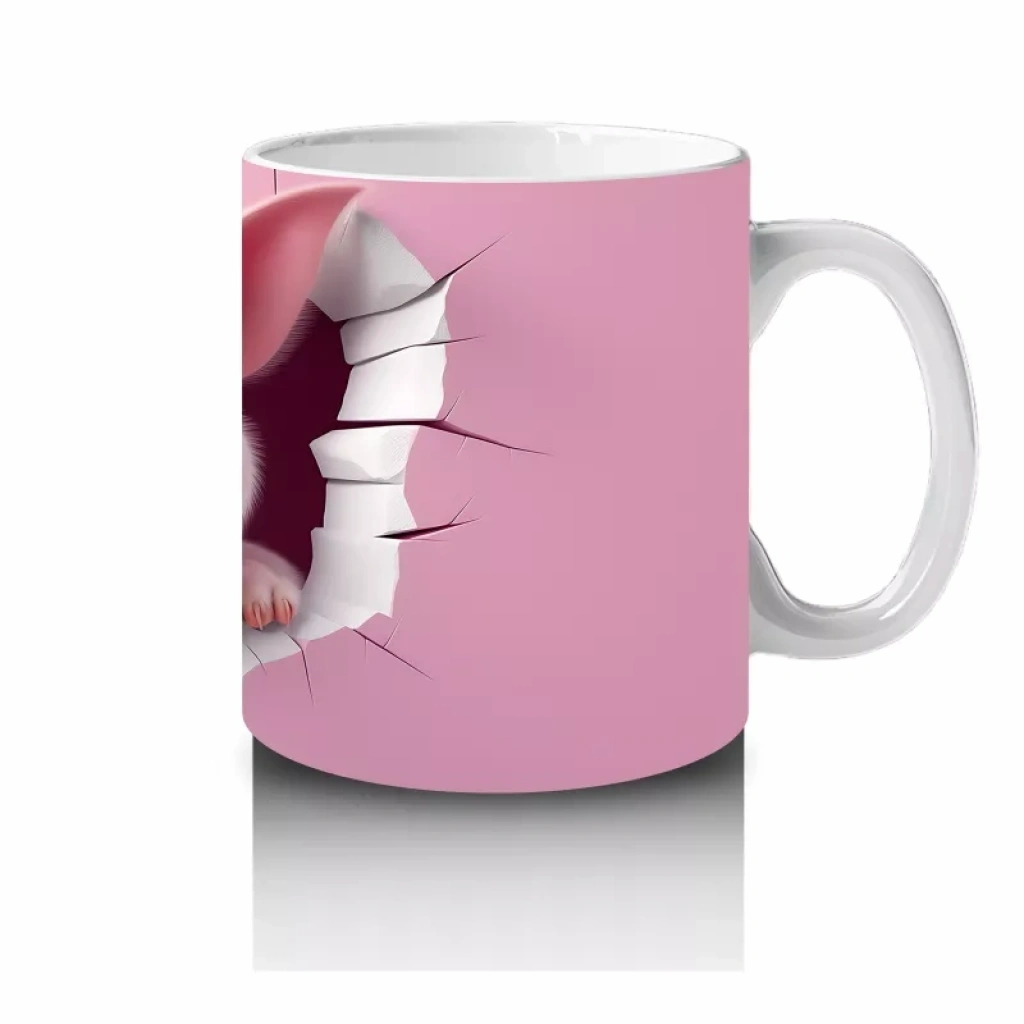 Pembe çatlak zeminden bakan sevimli domuzcuk figürü, tatlı ve sıcak bir atmosfer yaratıyor. Sevimlilik ve neşe dolu tasarımlar arayanlar için özel bir kupa.