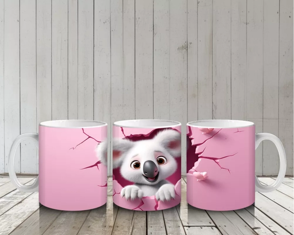 Pembe çatlak duvar arasından meraklı gözlerle bakan koala yavrusu, sevimlilik ve sıcaklığı bir araya getiriyor. Doğal ve huzur dolu detayları sevenler için özel bir tasarım.