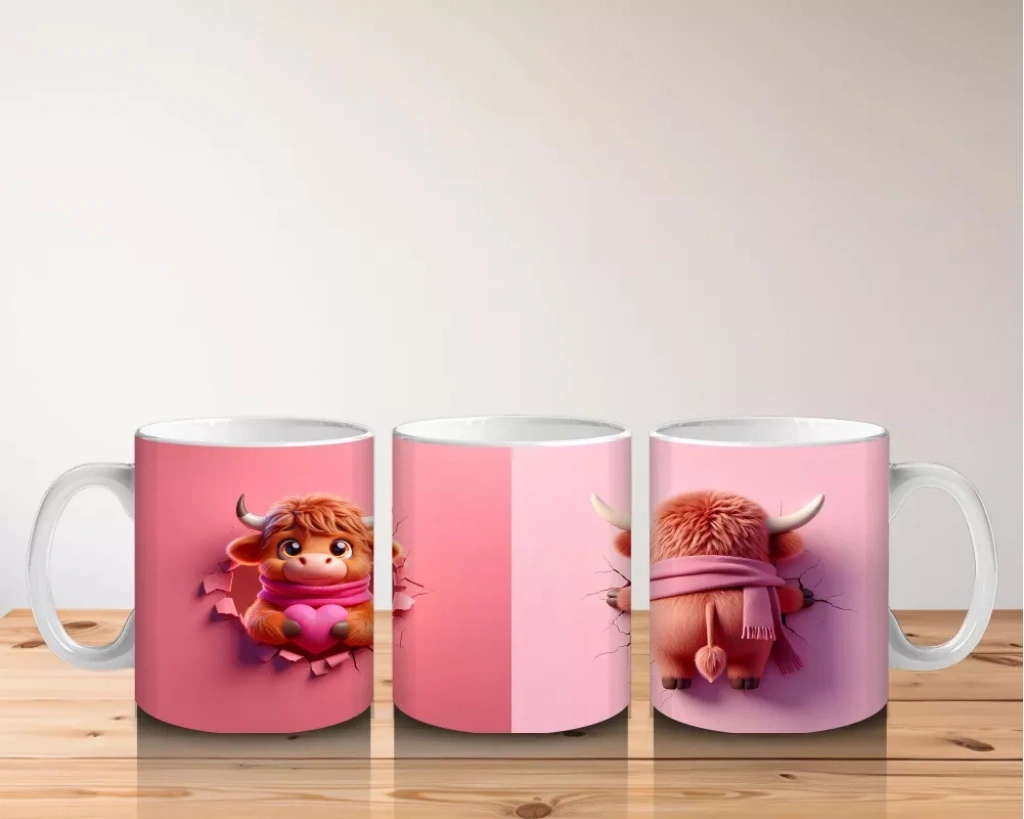 Pembe Fon Üzerinde Kurdeleli Maskot Buzağı – Baskılı Kahve Kupası