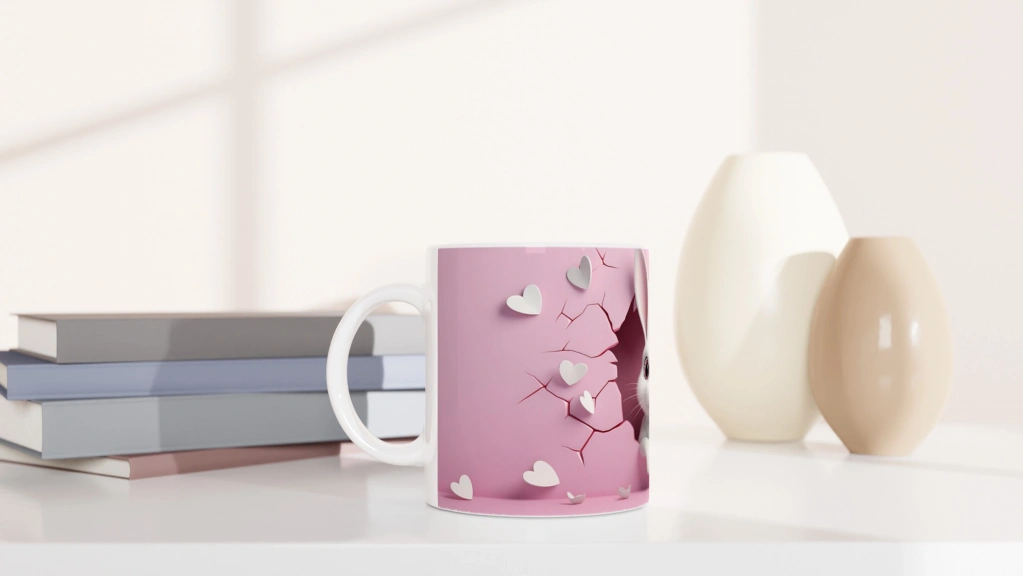 Pembe Kalpler Arasından Bakan Sevimli Tavşan Temalı Baskılı Kupa Bardak