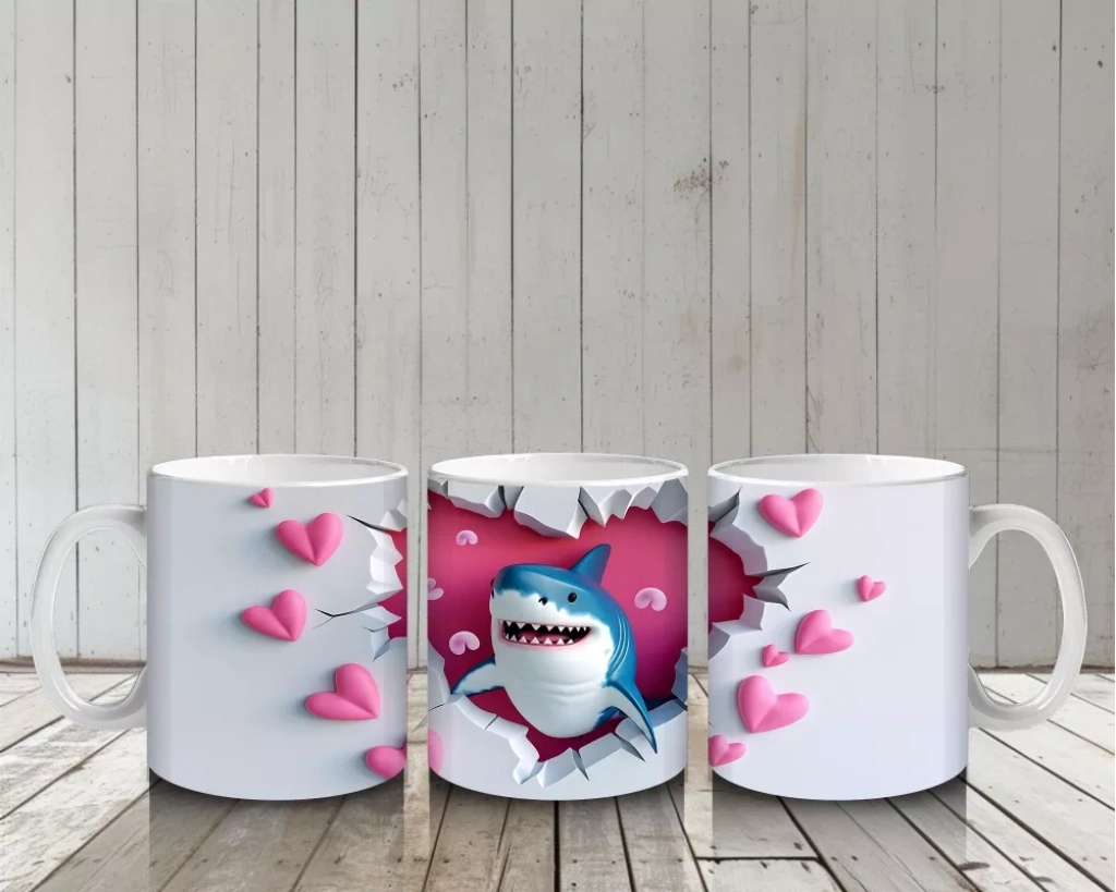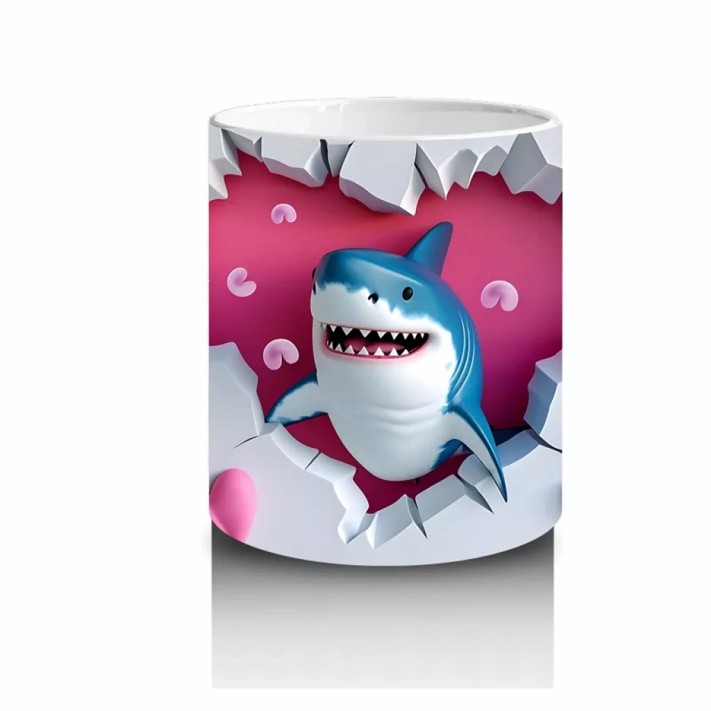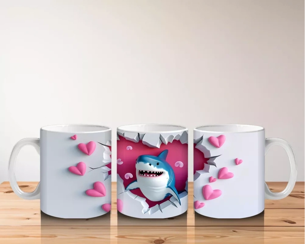 Pembe kalplerle çevrili ve gülümseyen köpekbalığı figürü, beklenmedik sevimlilik ve neşeyi bir araya getiriyor. Eğlenceli ve pozitif tasarımları sevenlere özel bir kupa.