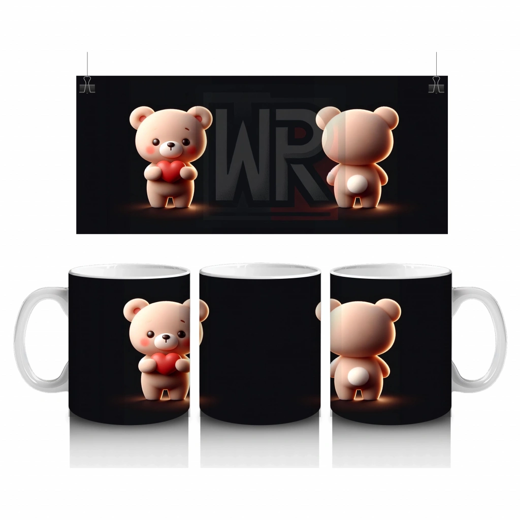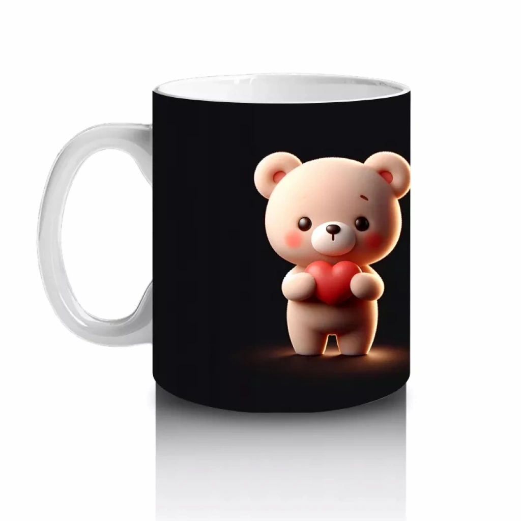 Pembe kalplerle çevrili ayıcık ve kız figürü, sıcak ve romantik bir atmosfer yaratıyor. Tatlı ve duygusal detayları sevenler için özel bir tasarım.