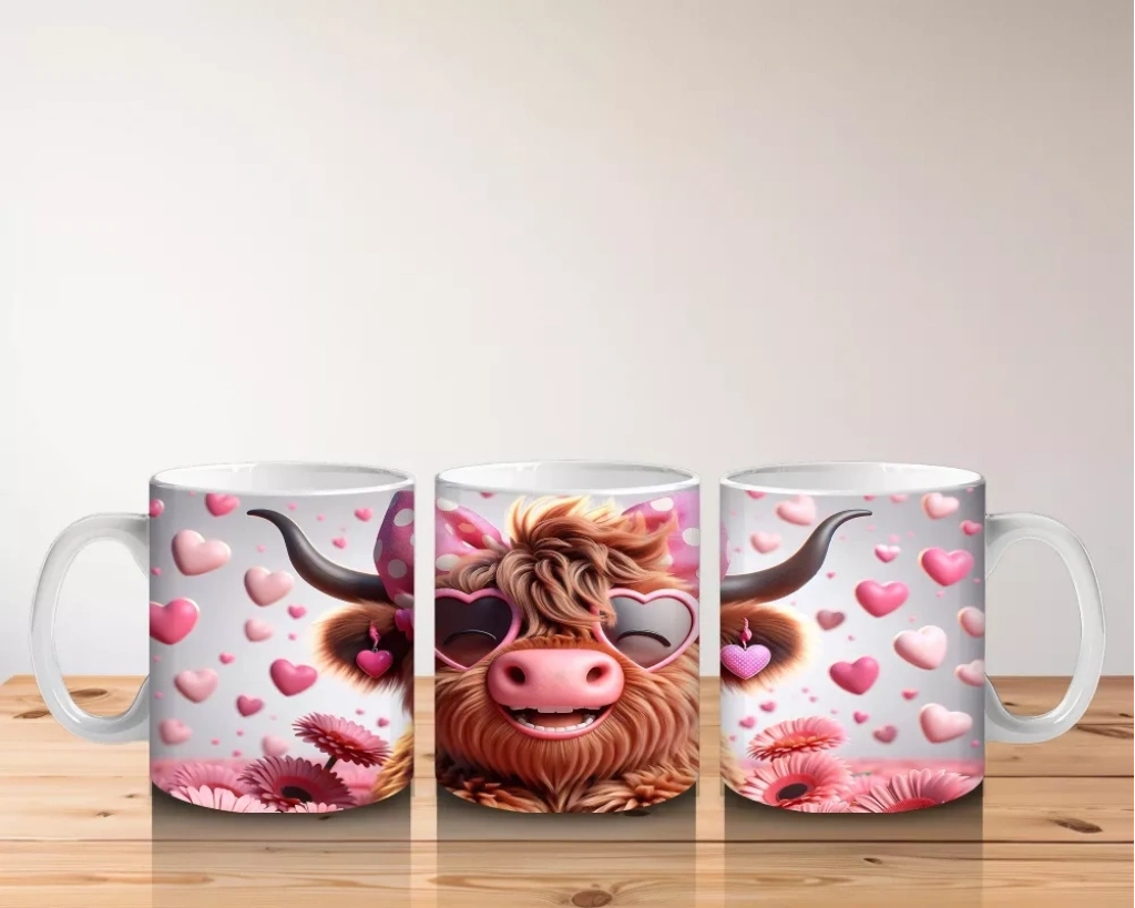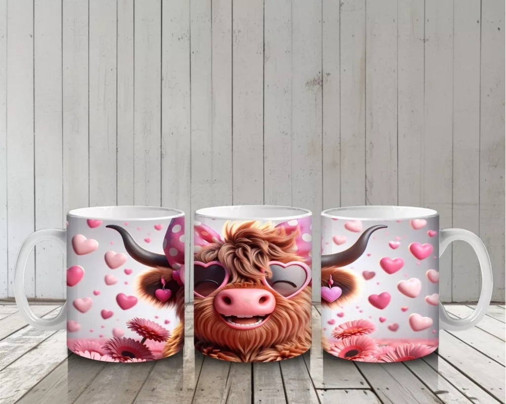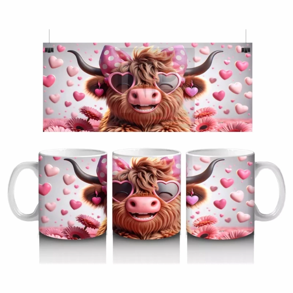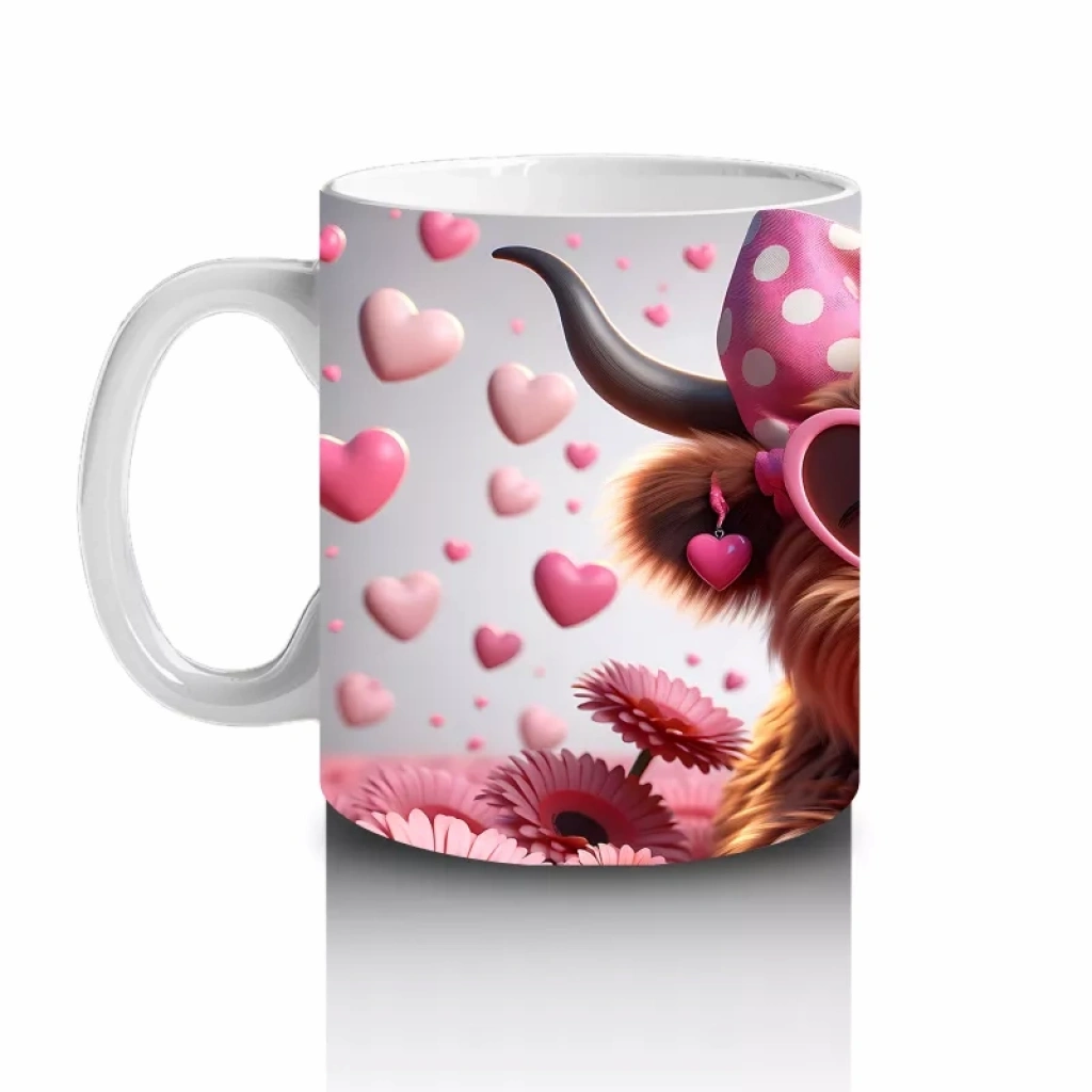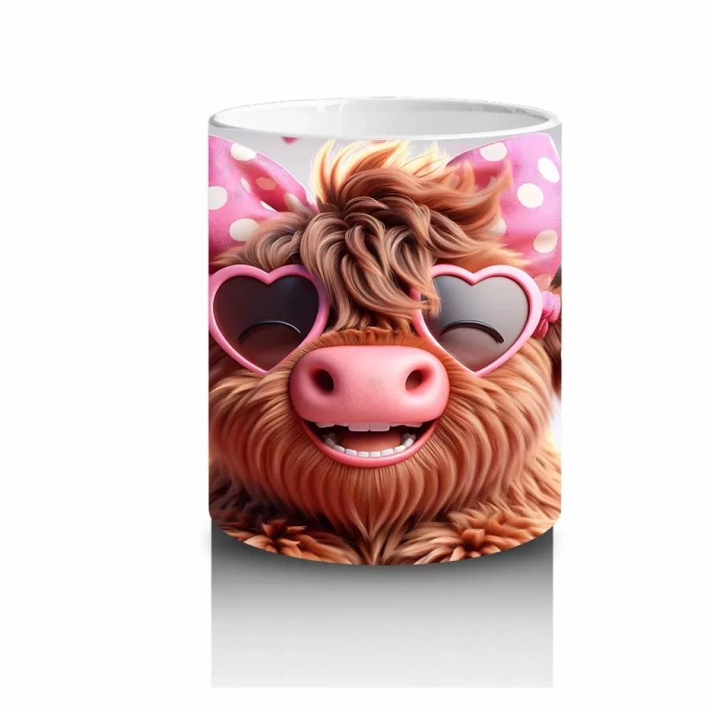 Pembe kalpli zemin üzerinde duran sevimli boğa figürü, sıcaklık ve neşeyi simgeliyor. Romantik ve içten detayları tercih edenler için özel bir kupa alternatifi.