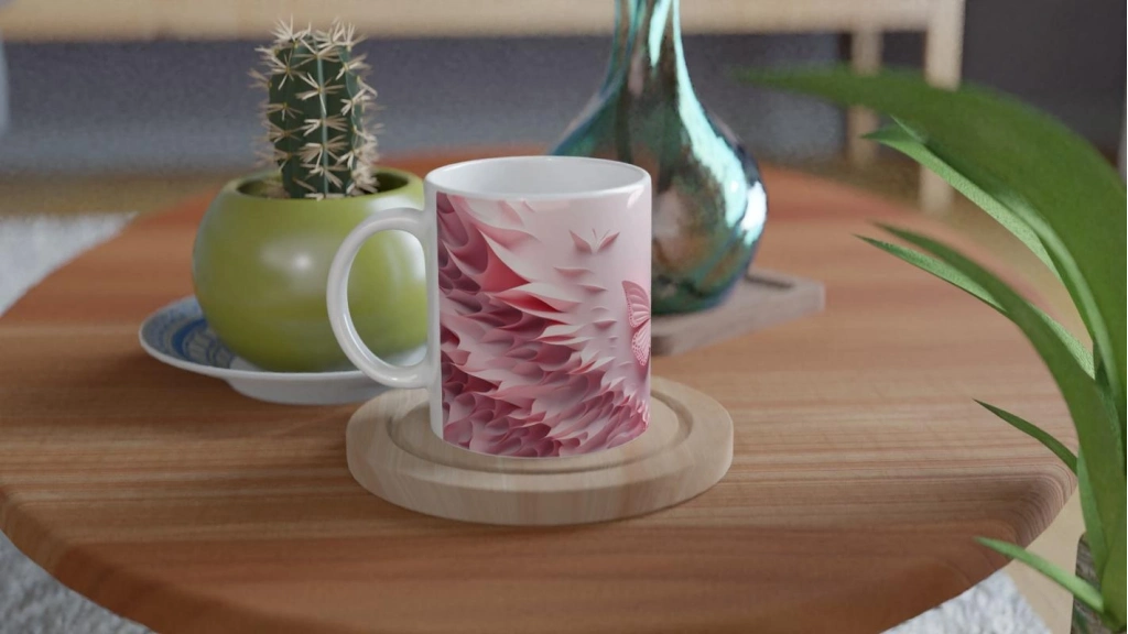 Pembe Kanatların Dansı: Soyut Kelebek Desenli Baskılı Kupa Bardak