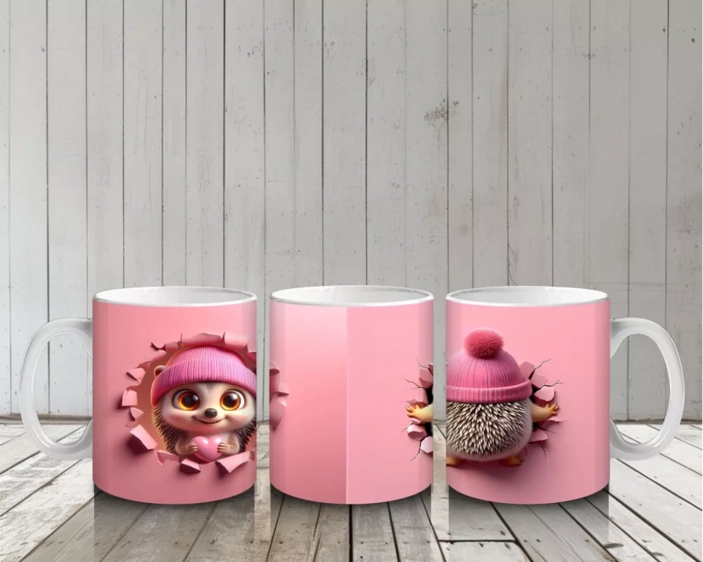Pembe Kostümlü Sevimli Kirpi Kız Maskot – Baskılı Kahve Kupası