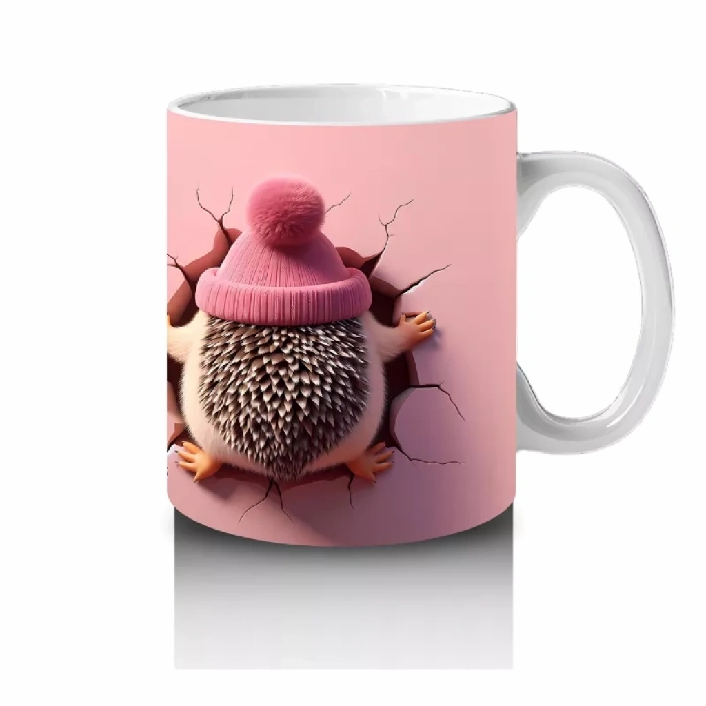 Pembe şapkasıyla bakışlarını size çeviren bu minik kirpi, beklenmedik bir tatlılık sunuyor. Farklı ve sempatik bir kupa arayanlar için neşeli bir seçim.