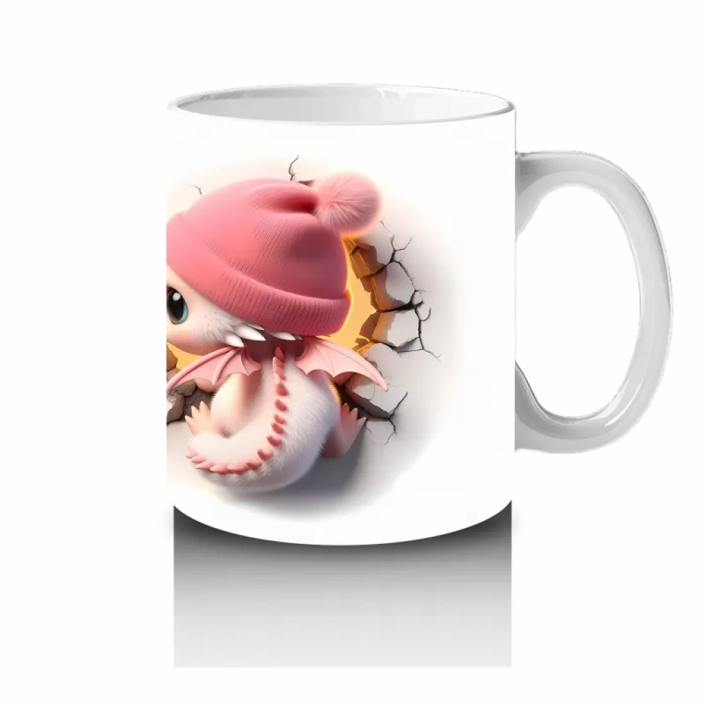 Pembe Şapkalı Sevimli Kız Maskot Çatlakta – Baskılı Kahve Kupası