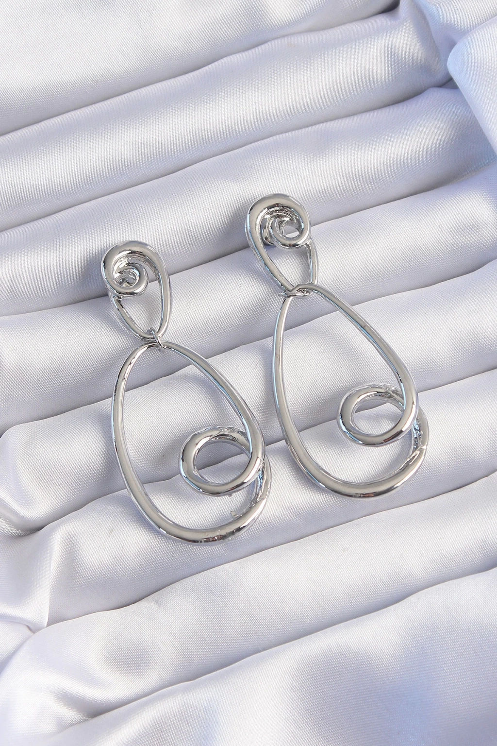 Pirinç Gümüş Renk Kıvrımlı Sallantılı Küpe