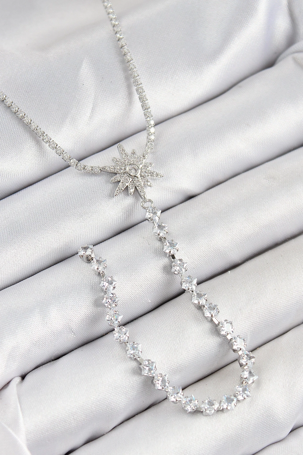 Pirinç Zirkon Taşlı Kutup Yıldızı Model Gold Renk Y Kolye