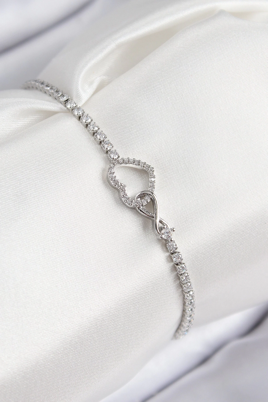 Pirinç Zirkon Taşlı Sonsuzluk Kalp Model Gümüş Renk Kadın Bileklik