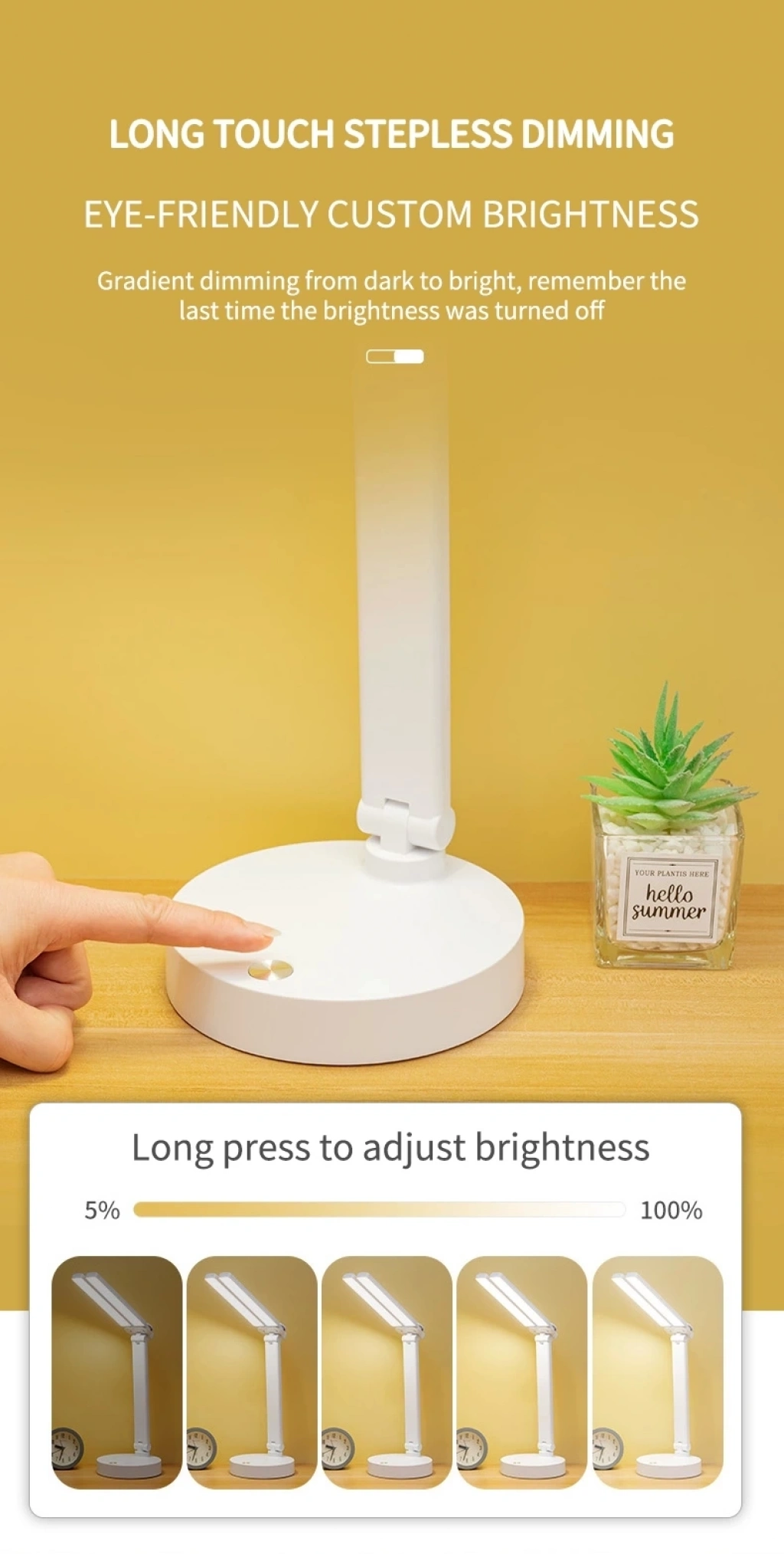 Şarjlı Dokunmatik Parlaklığı Ayarlanabilen 3 Renk Tonlu Masa Lambası Masa lambasında 3 renk tonu bulunmaktadır. (Sıcak Işık - Beyaz Işık - Gün Işığı) Dokunmatik alana basılı tutarak parlaklığı azaltabilir ya da artırabilirsiniz Şarja takılıyken kullanılabilmektedir  RENK SICAKLIĞI: 3000 - 6000K DOKUNMATİK MODU: 3 FARKLI RENK MODU (Sıcak Işık - Beyaz Işık - Gün Işığı) BATARYA: Li-ion 2 18650 - 3.7V GÜÇ: 5W GİRİŞ: DC5V / 1A LED ADEDİ: 40 ŞARJ KABLOSU: 120CM