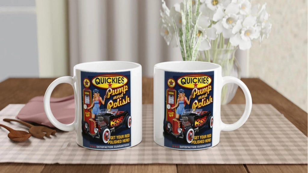 Amerikan benzin istasyonu esintili bu bardak, “Pump and Polish” yazısıyla nostaljik bir mizah ve enerji sunuyor.