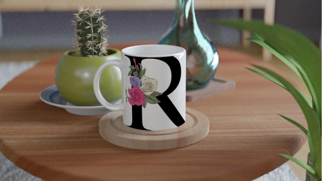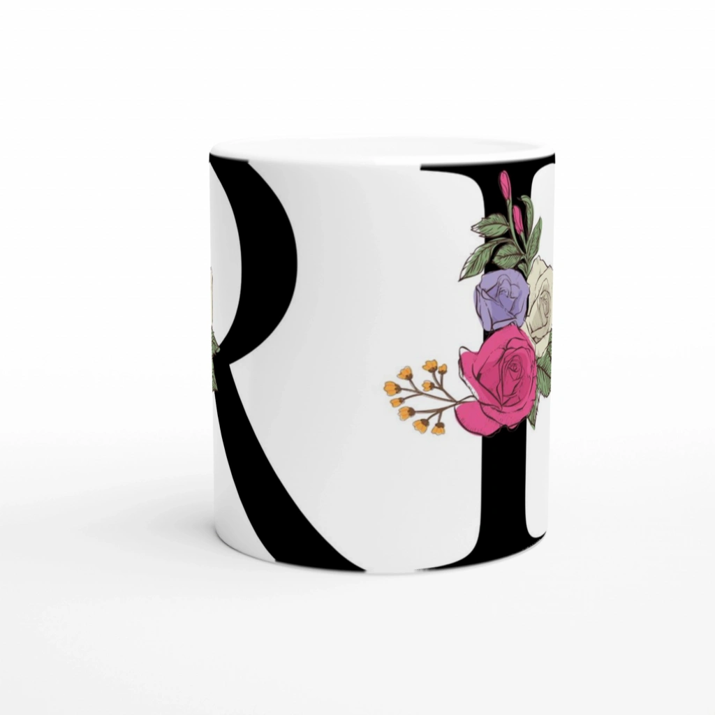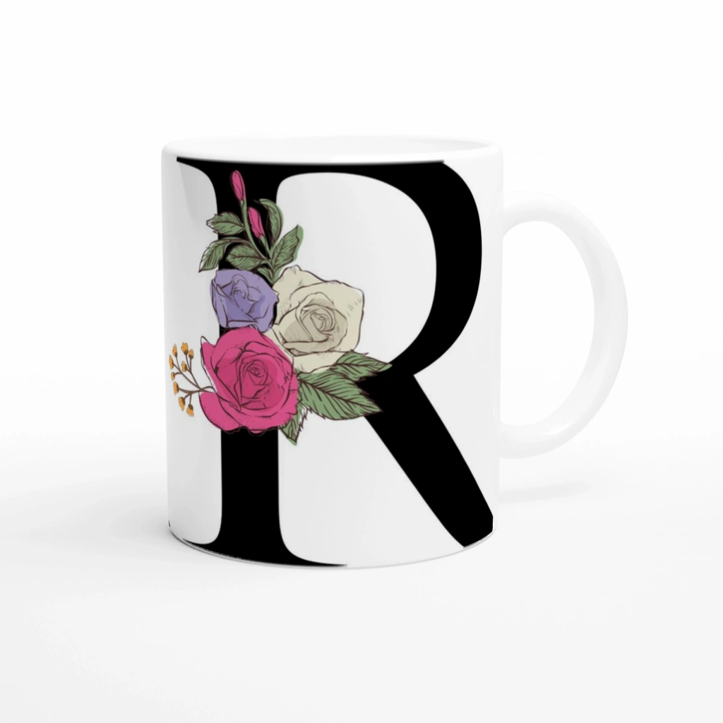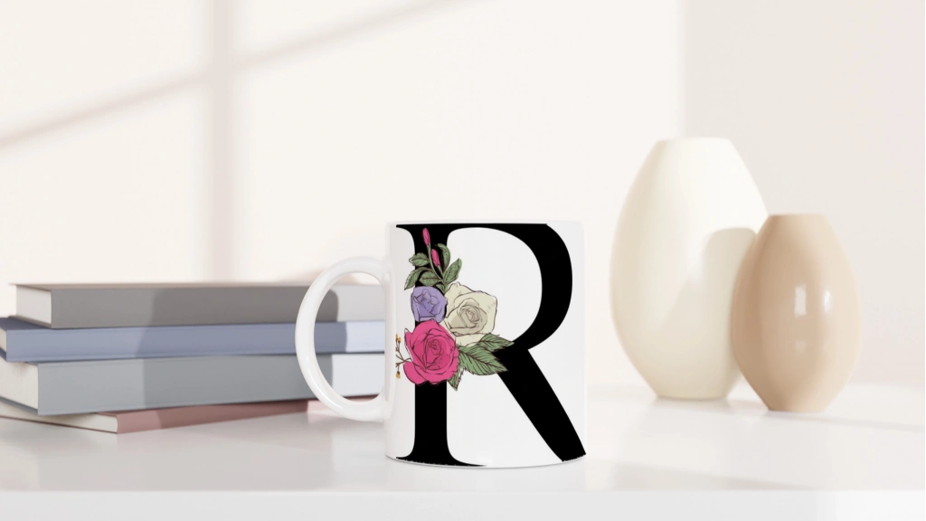 R Harfi Çiçek Süslemeli Harfli Kupa Bardak