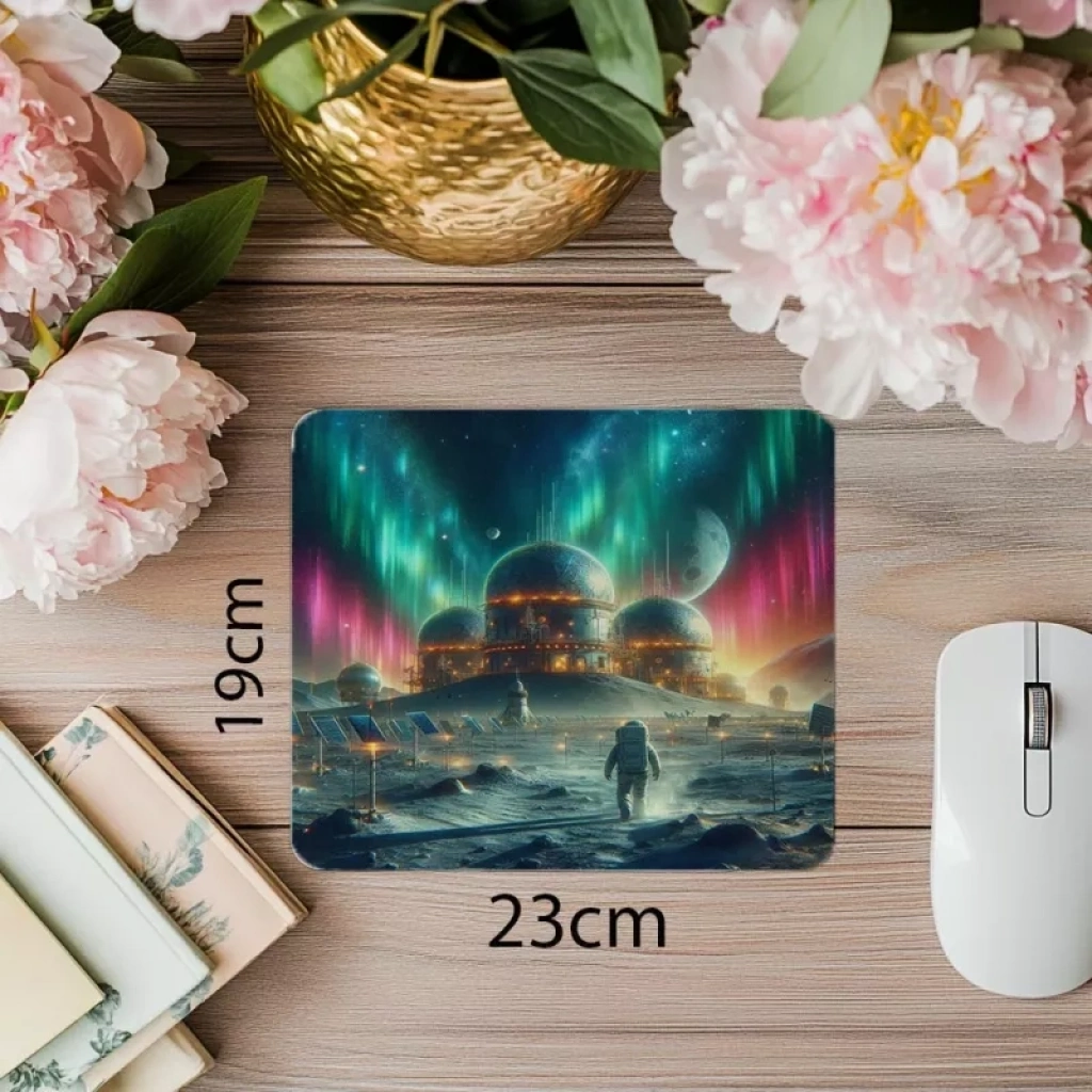 Renkli gökyüzü altında duran astronot figürüyle tasarlanan bu mouse pad, bilim kurgu severlere görsel bir şölen yaşatıyor.