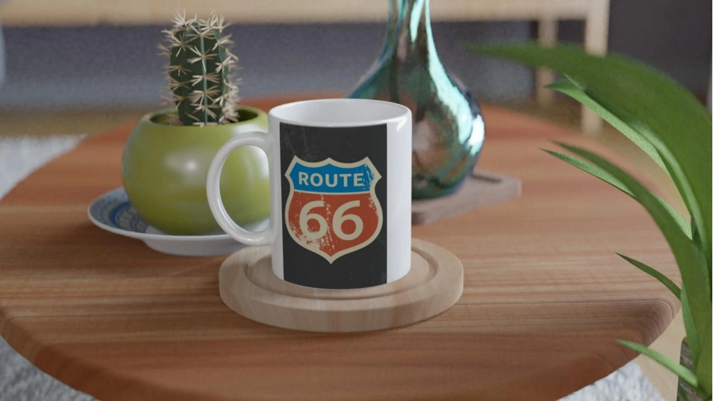 Amerikan yollarının efsanesi Route 66’nın klasik tabelasıyla hazırlanan bu kupa bardak, nostaljiyi her yudumda yaşatır.