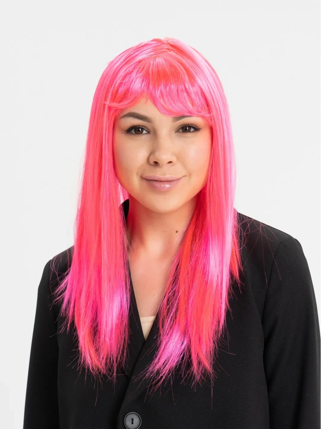 Şeker Pembesi Koyu Pembe Renk Uzun Düz Parti Peruğu