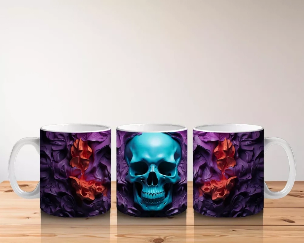 Sisler Arasında Işıltılı Mavi Kafatası – Hediyelik Kahve KupasıSisler Arasında Işıltılı Mavi Kafatası – Hediyelik Kahve Kupası Yoğun sislerin içinden parlayan mavi kafatası figürü, bu Cadılar Bayramı baskılı kupaya büyülü bir atmosfer kazandırıyor. Gotik ama modern bir hediyelik kahve kupası alternatifi.
