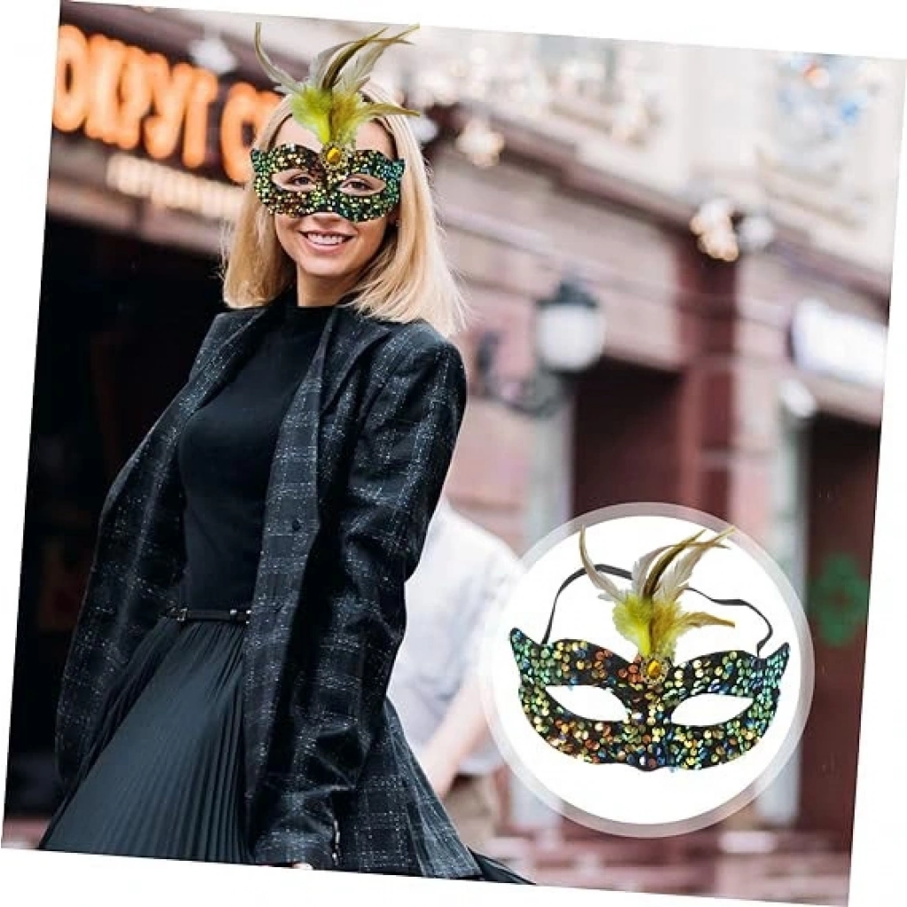 Siyah Kadife Üzeri Rengarenk Payetli Pullu Sarı Tüylü Sarı Taşlı Parti Maskesi: Gecenin Yıldızı Siz Olun!