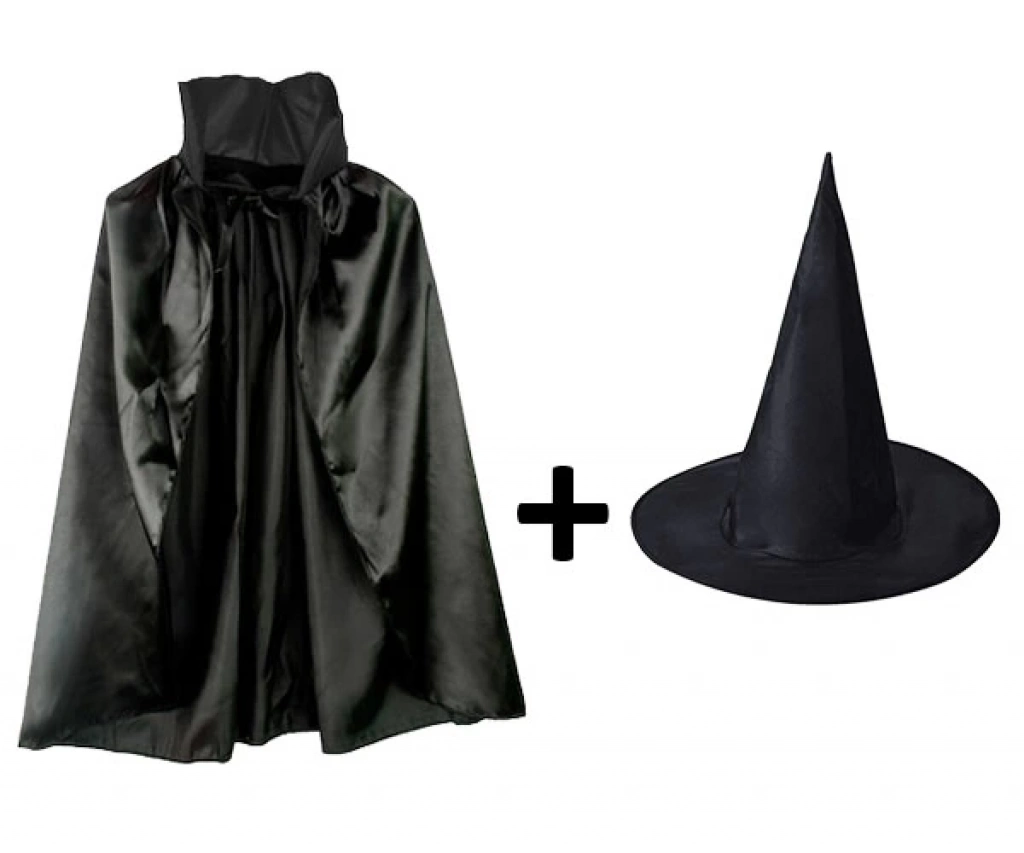 Siyah Yakalı Pelerin Ve Siyah Cadı Şapkası Seti Çocuk Boy