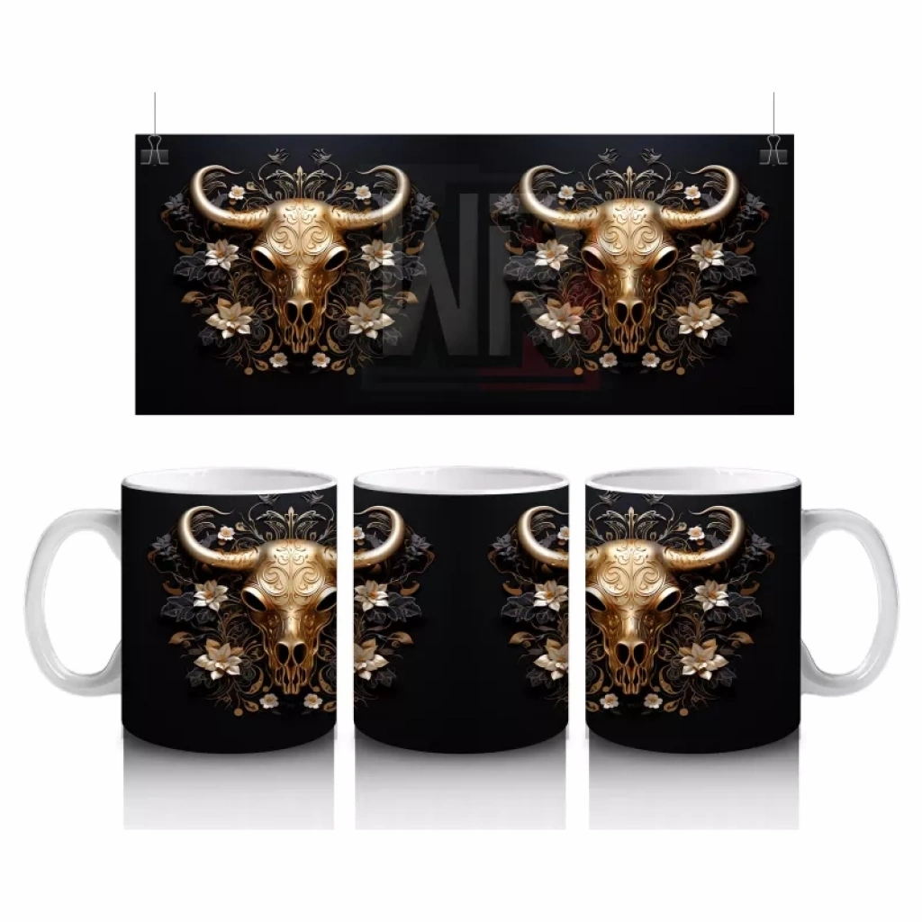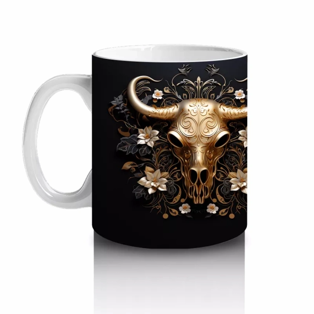 Siyah fon üzerinde yer alan altın renkli iki boğa figürü, güç, denge ve zarafeti simgeliyor. Lüks ve çarpıcı tasarımları sevenler için sofistike ve iddialı bir kupa seçimi.