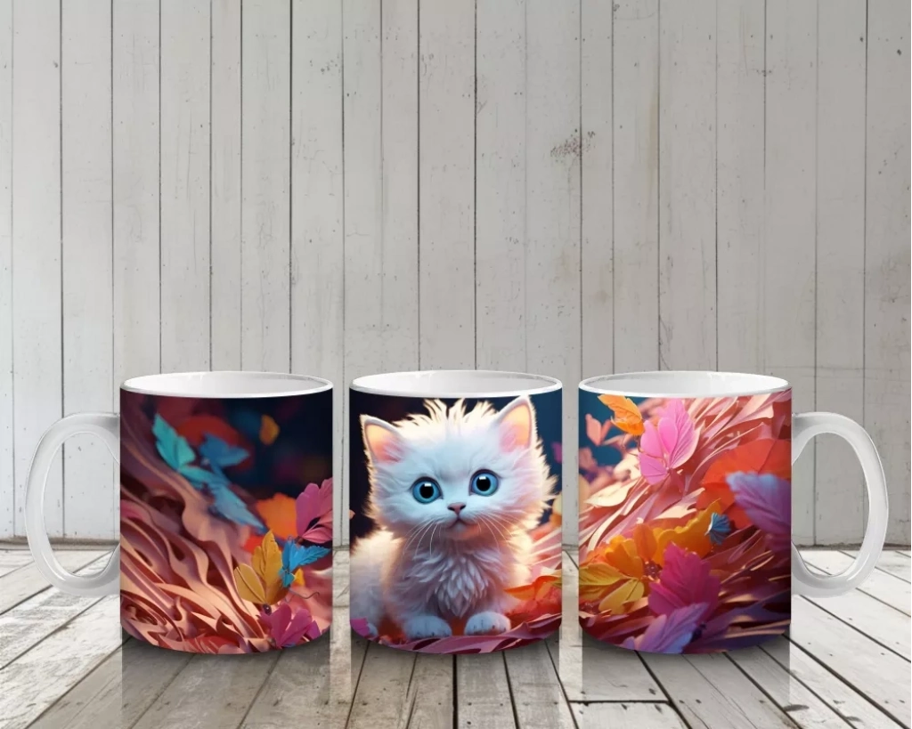 Sonbaharın sıcak tonlarıyla çevrelenmiş mavi gözlü kedi figürü, mevsimin melankolisini ve huzurunu yansıtan özel bir tasarım sunuyor. Doğa ve kedi temalı hediyelikler için ideal bir kupa modeli.