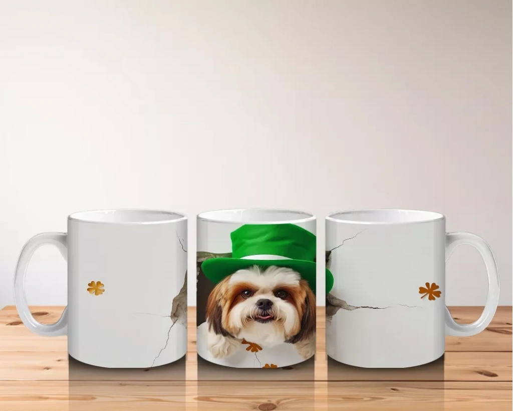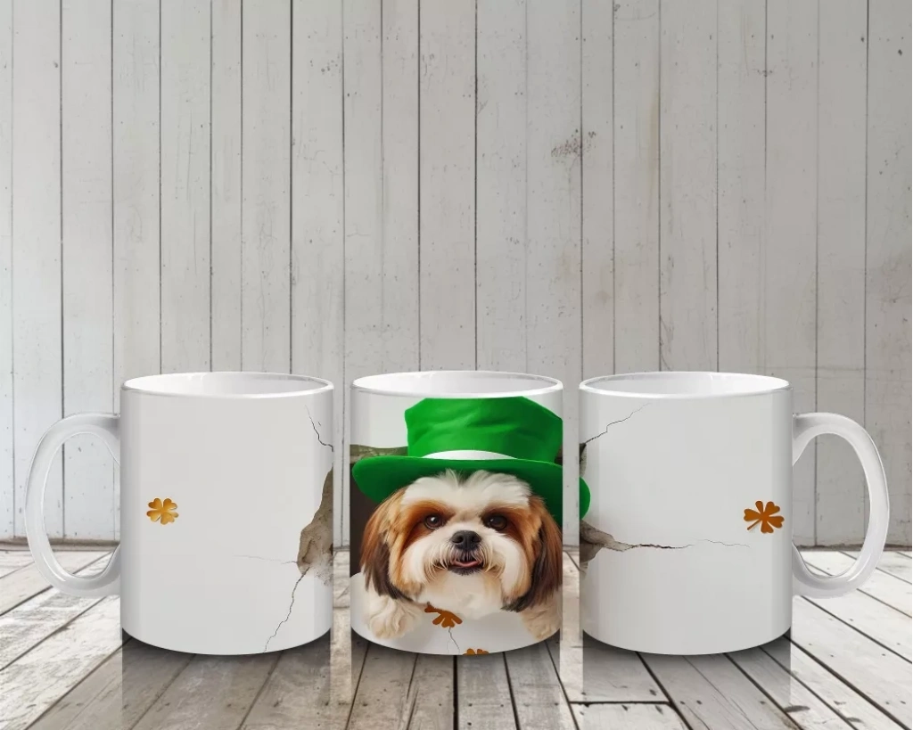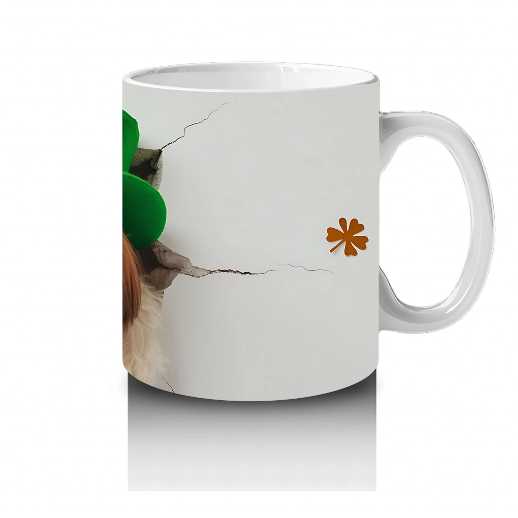 St. Patrick Şapkalı Bıyıklı Sevimli Köpek – Baskılı Kahve Kupası