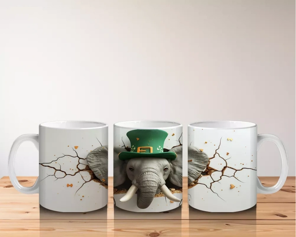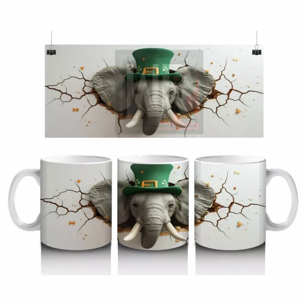 St. Patrick Şapkasıyla Fil Figürü – Baskılı Kahve Kupası