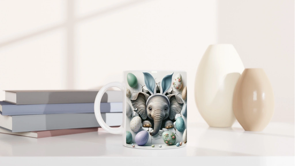 Tavşan Kulaklı Fil ve Paskalya Yumurtaları Temalı Baskılı Kupa Bardak