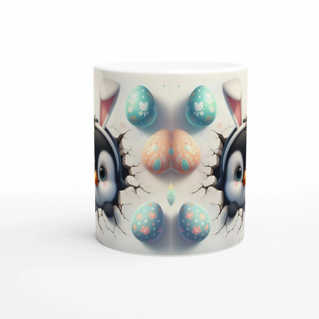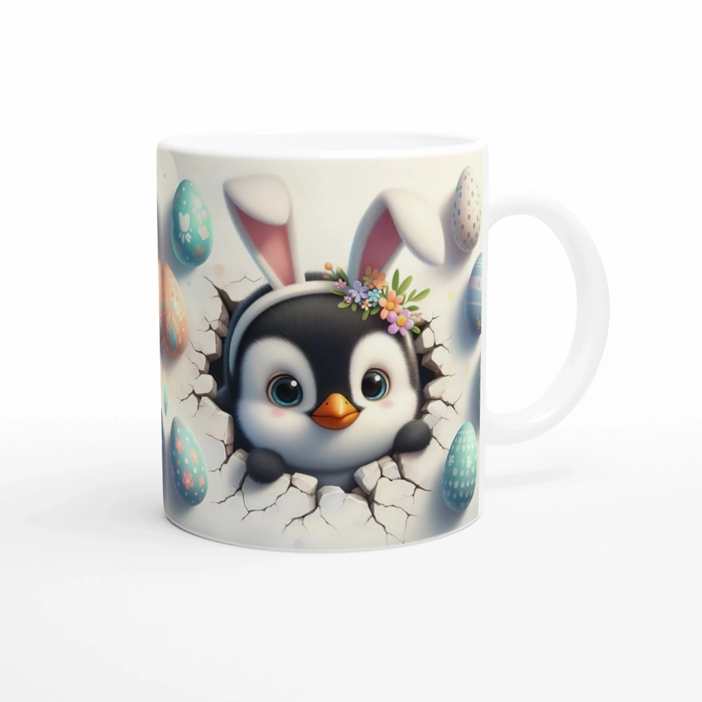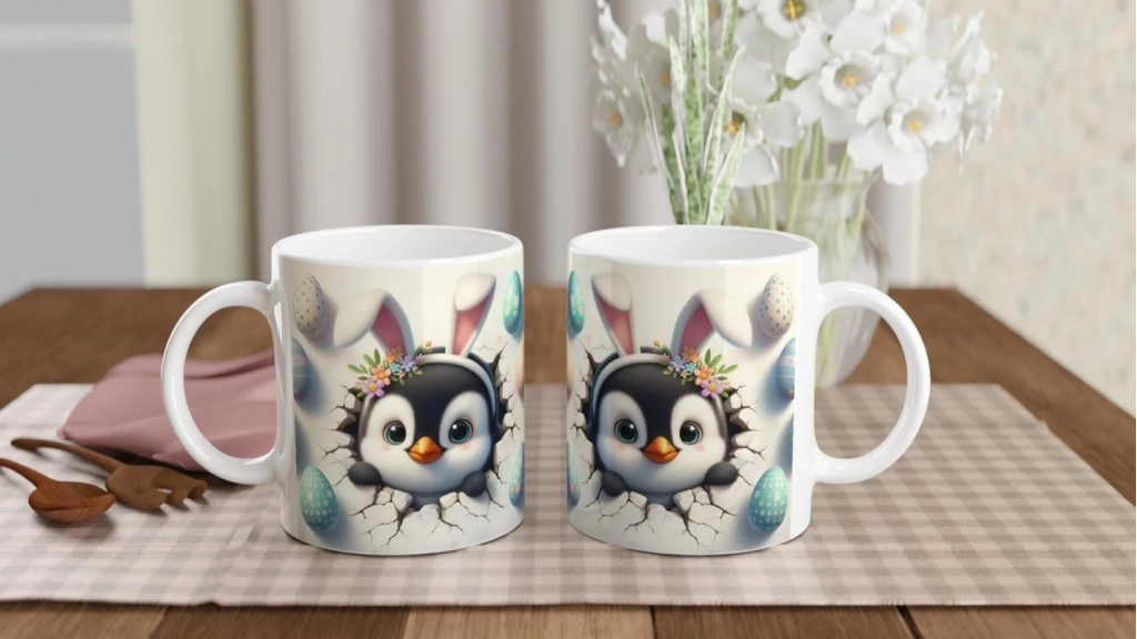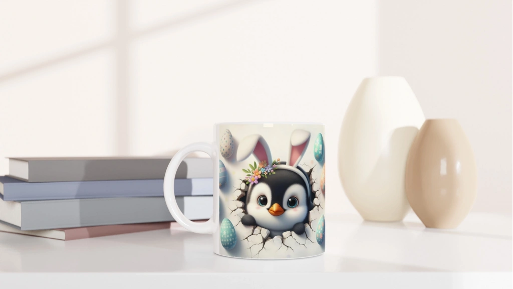 Tavşan Kulaklı Penguen Temalı Baskılı Kupa Bardak, çatlak duvardan göz kırpan minik pengueni ve etrafındaki renkli yumurta desenleriyle hem baharı hem neşeyi aynı anda getiriyor. Çocuklar ve içindeki çocuğu koruyanlar için eşsiz bir hediye alternatifi.