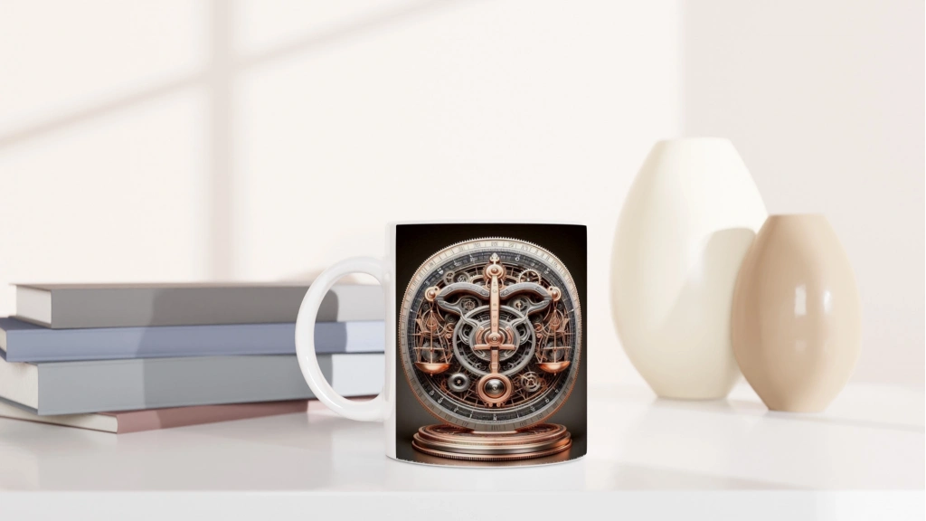 Terazi Burcu Baskılı Kahve Kupası - Zamanın Çarkları Astroloji Mekanizması Vs3