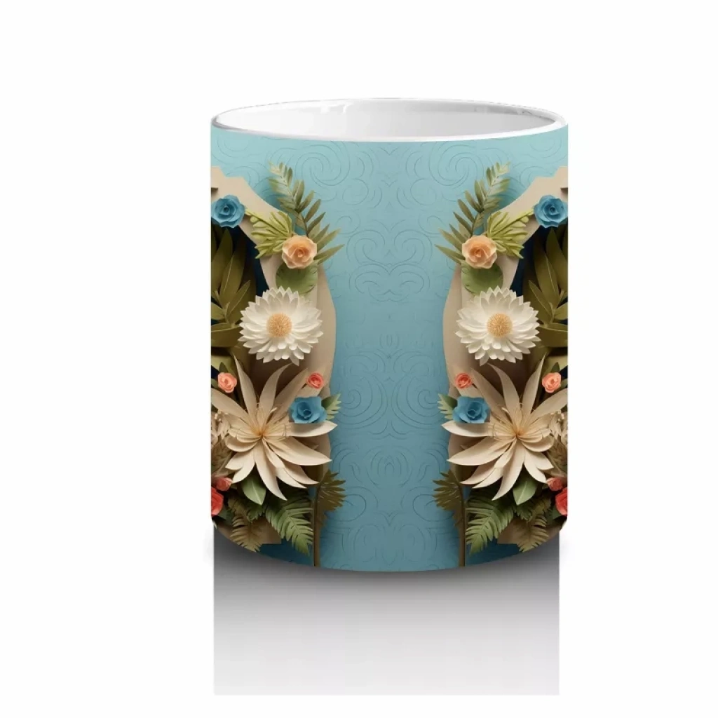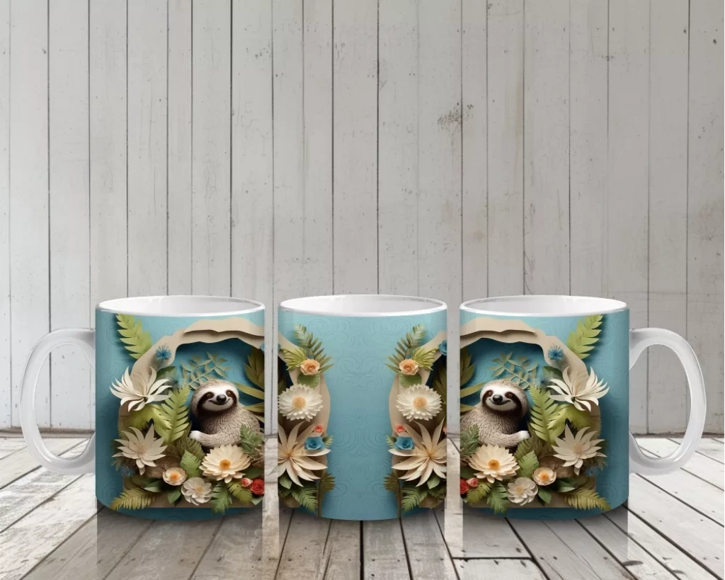 Canlı tropikal yaprakların arasında huzurla duran koala, doğanın sakinliğini ve sıcaklığını yansıtıyor. Egzotik ve sevimli figürleri sevenler için ferahlatıcı bir kupa tasarımı.