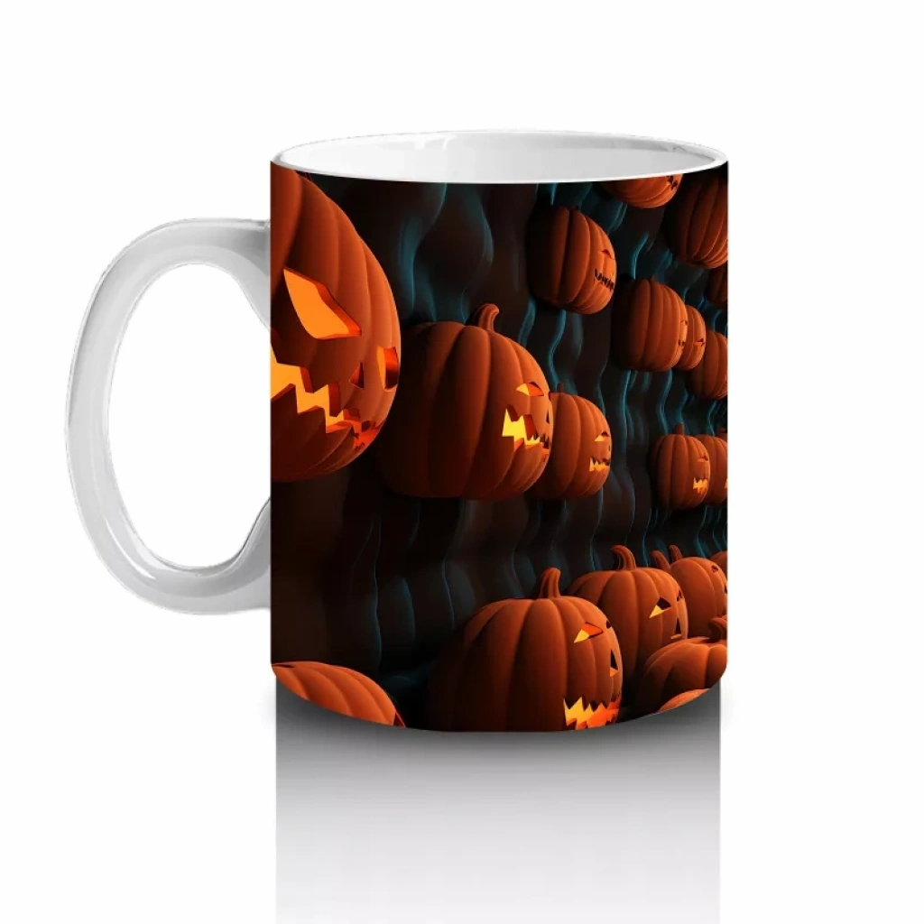Cadılar Bayramı ruhunu mutfağınıza taşıyın! Balkabağı fenerleri, hayaletler, yarasalar, kara kediler, cadı şapkaları ve mistik arka planlarla süslenmiş bu özel kupa bardaklar; sıcak kahve, çay veya kakao keyfinizi eğlenceli bir hale getirir.