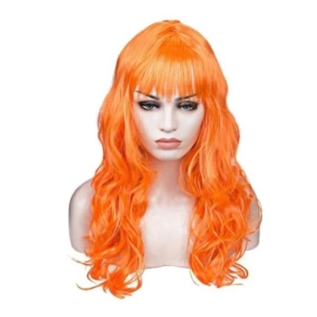 Turuncu Renk Astarlı Dalgalı Kesim Parti Peruğu