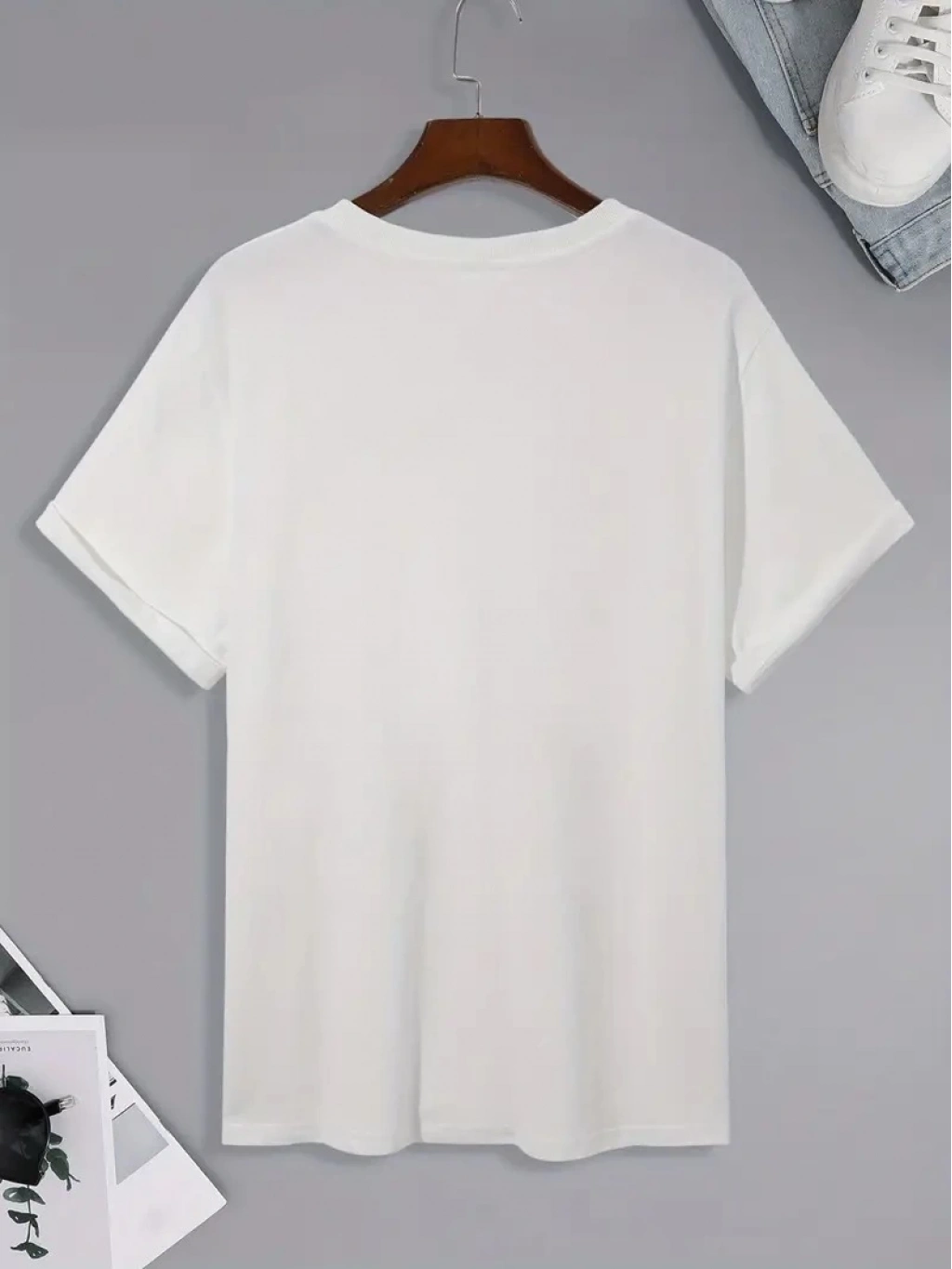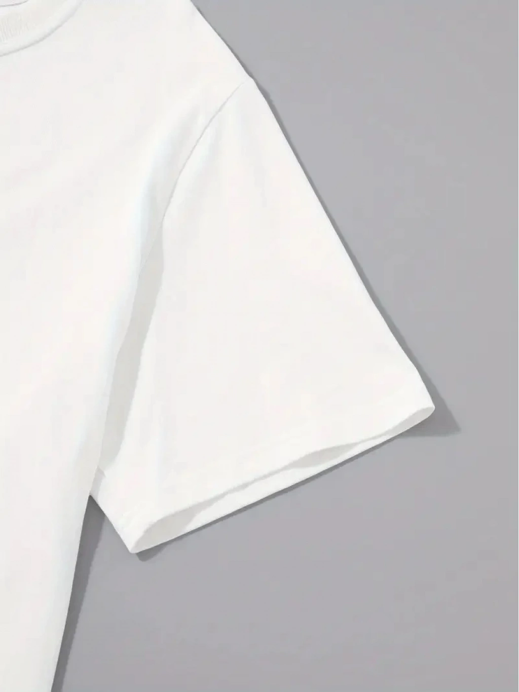 20/1 Penye Compack Palmiye Baskılı Oversize Bisiklet Yaka Kısa Kol T-shirt - Beyaz -