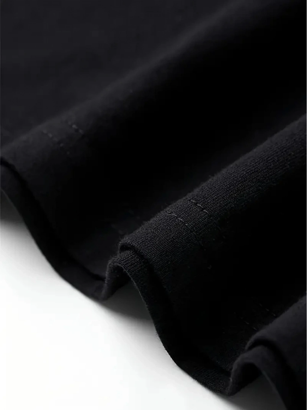 AICG Ön Arka Baskılı Bisiklet Yaka Oversize Bisiklet Yaka T-shirt - Siyah -
