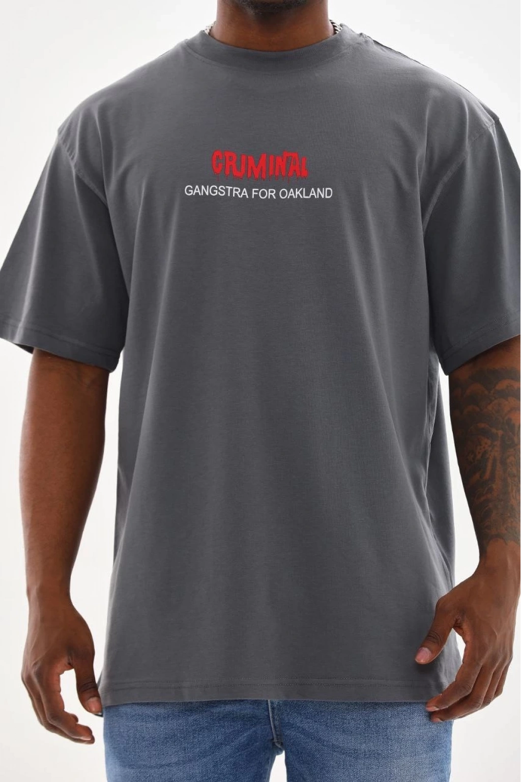 Baskılı Oversize T-Shirt - Füme -