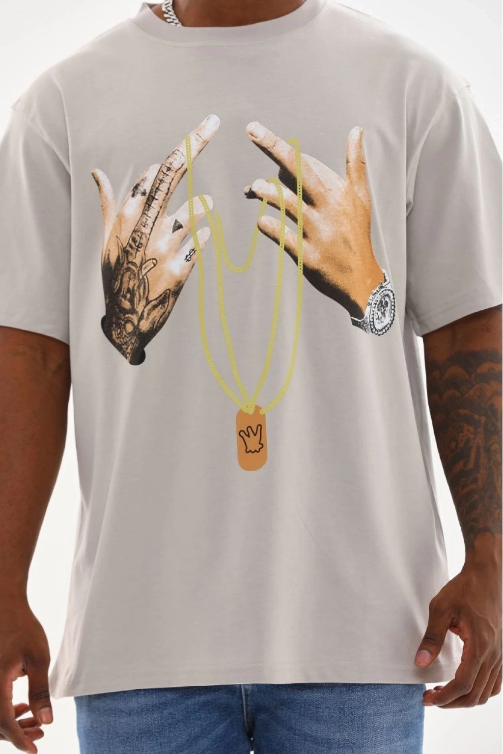 Baskılı Oversize T-Shirt - Gri -