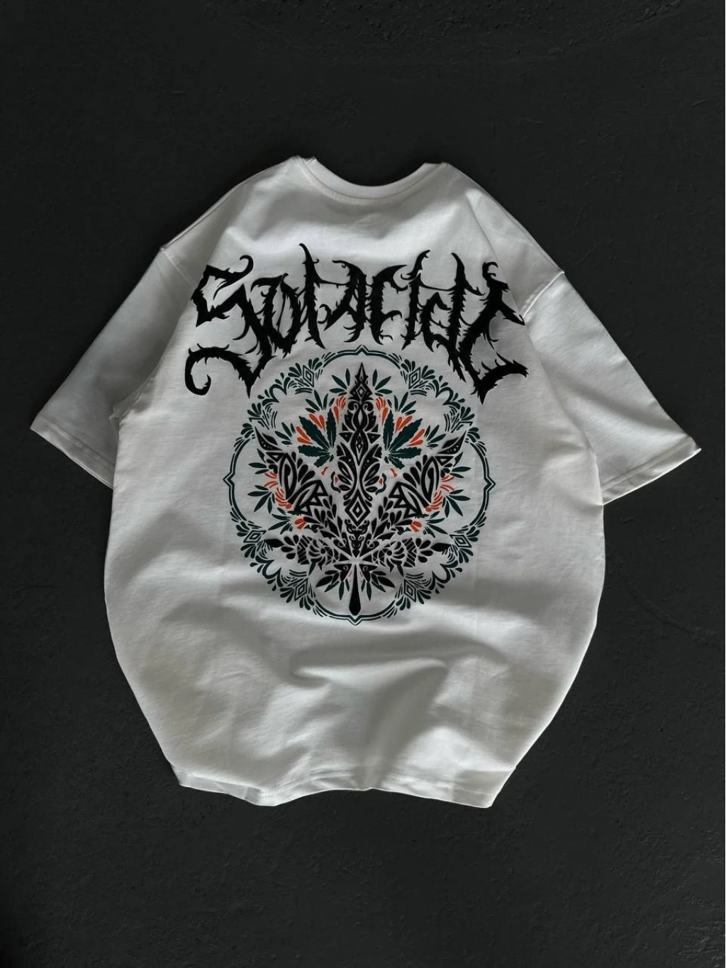 Bisiklet Yaka Baskılı Oversize T-Shirt - Beyaz -