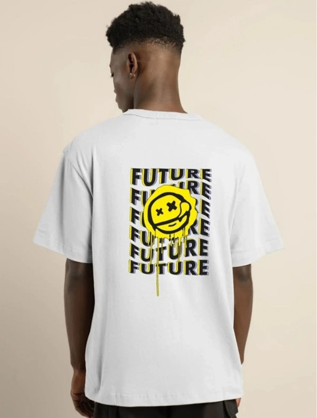 Bisiklet Yaka Baskılı Oversize T-Shirt - Beyaz -