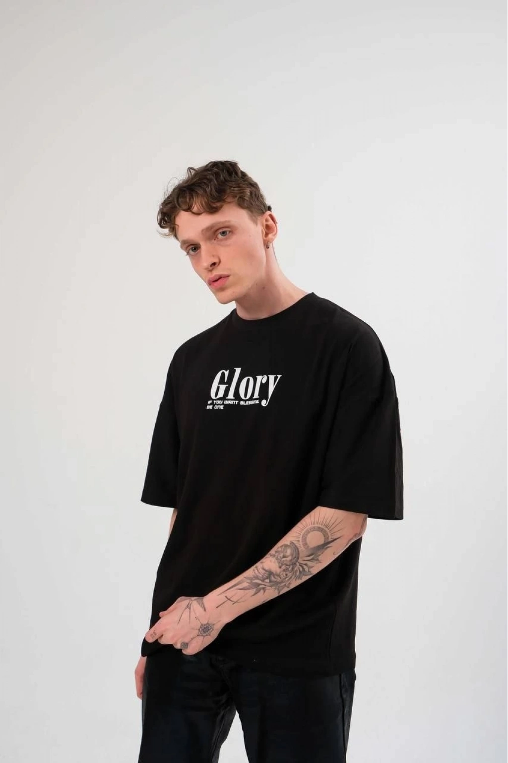 Bisiklet Yaka Baskılı Oversize T-Shirt - Siyah -