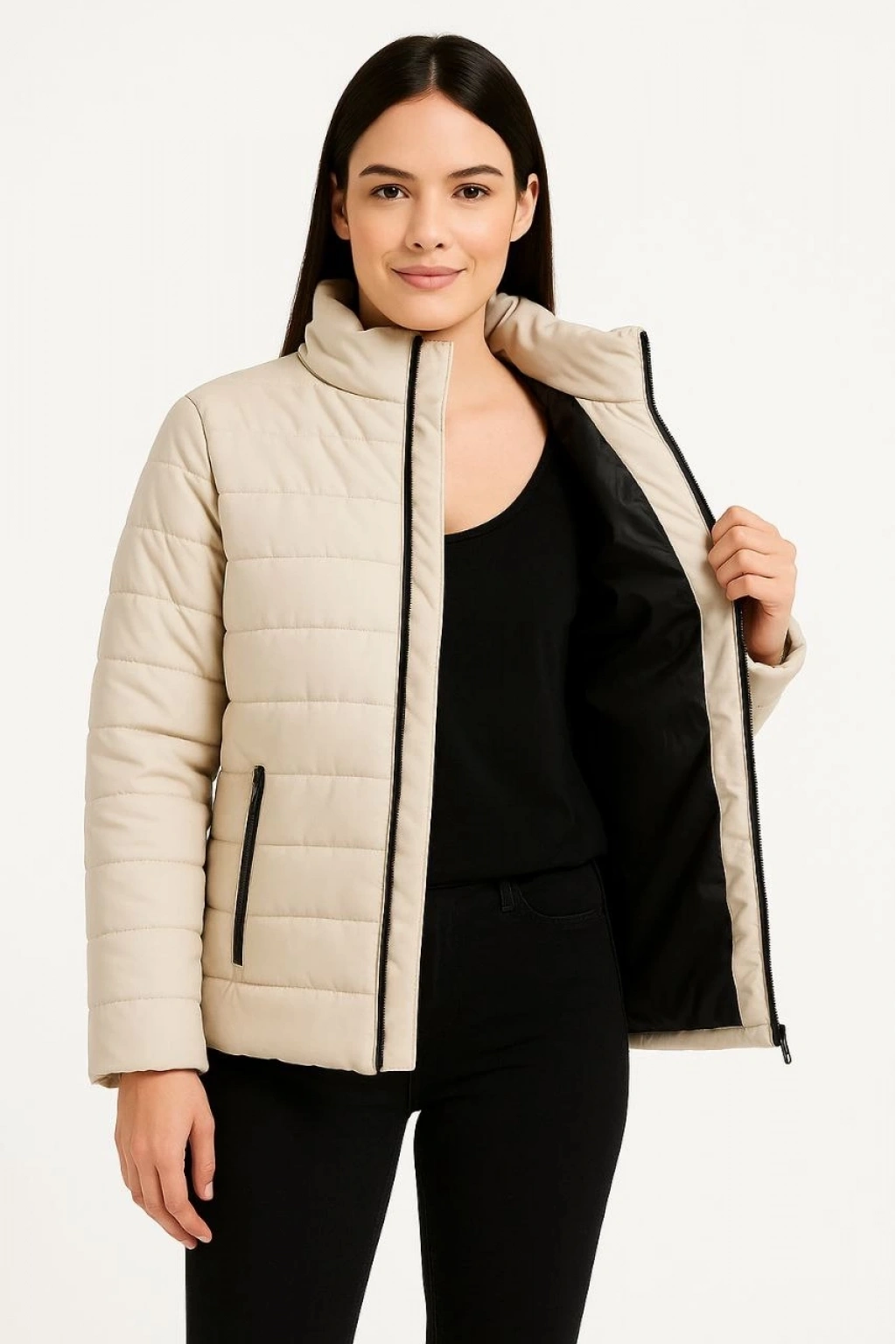 Bomber Mont Ceket – Su İtici Kumaş, Kapitone Astarlı, Fermuarlı, Kışlık - Bej -