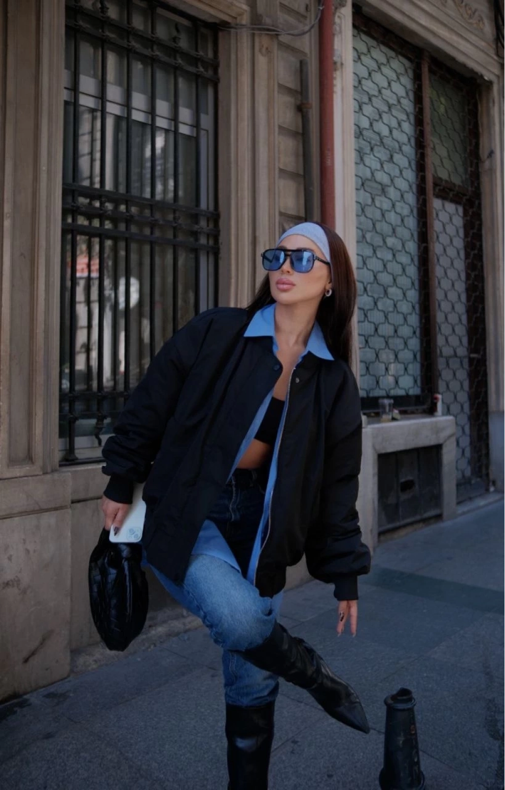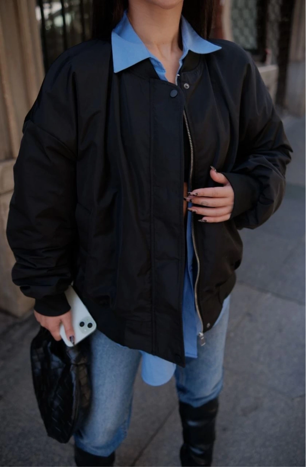 Cepli Bomber Ceket Mont - Siyah -